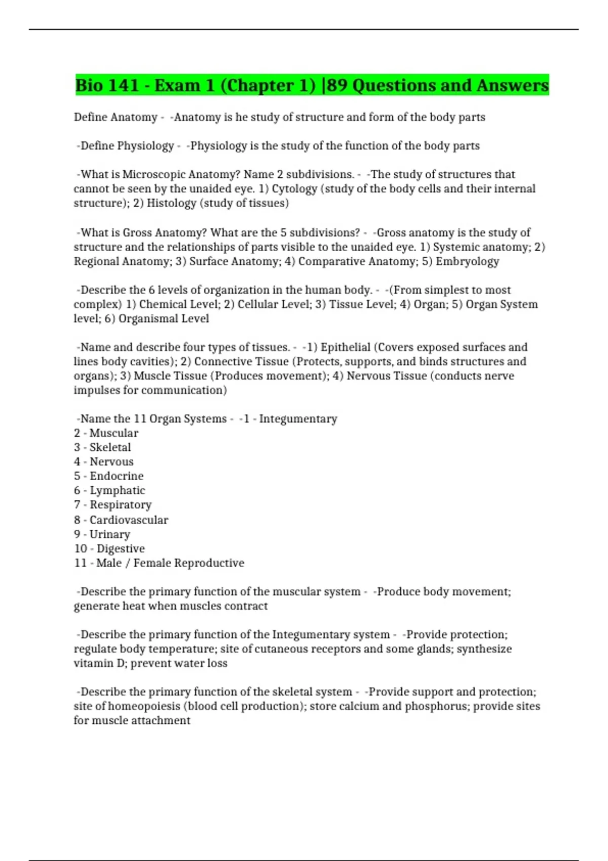 Bio 141 - Exam 1 (Chapter 1) |89 Questions and Answers