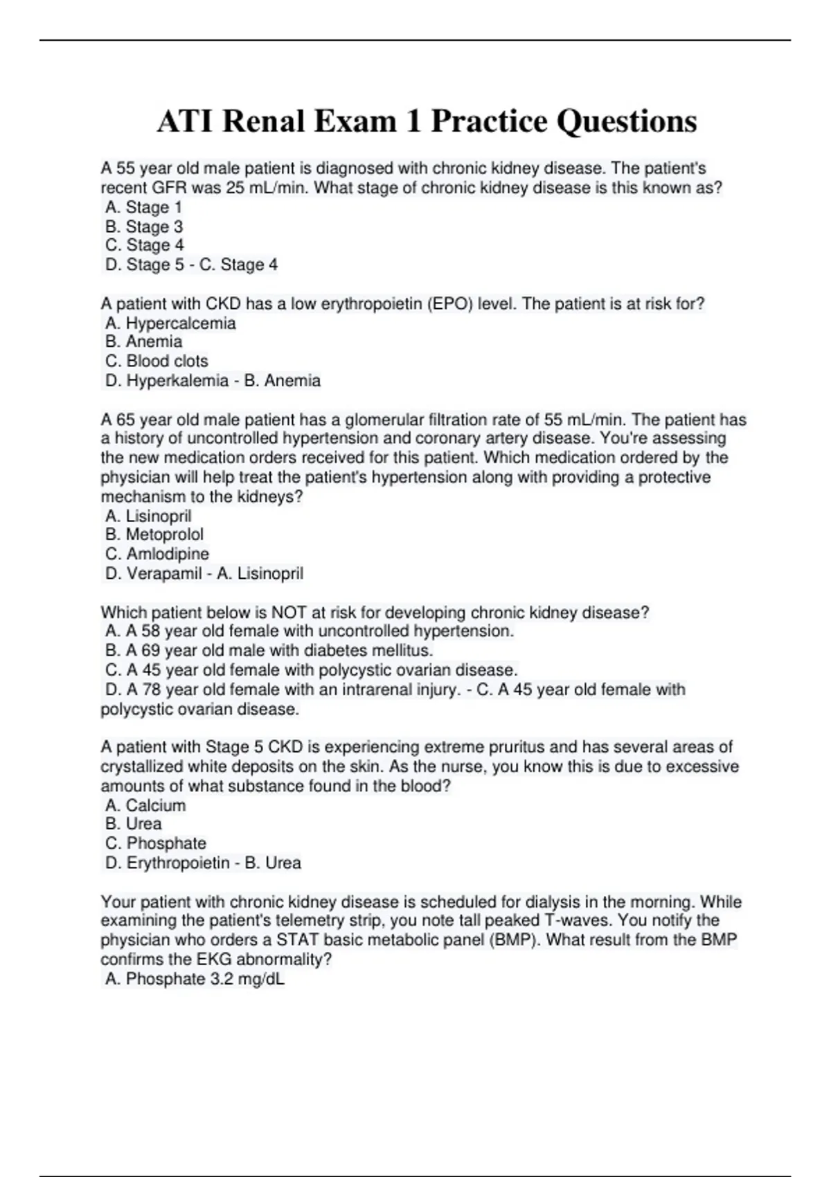 D. Magnesium - B. Creatinine