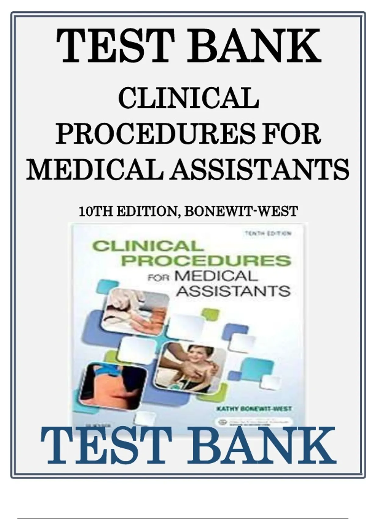 TEST BANK CLINICAL PROCEDURES FOR MEDICAL ASSISTANTS 10TH EDITION, BONEWIT-WEST (Latest edition with All Chapters Covered) (Ranked A+)
