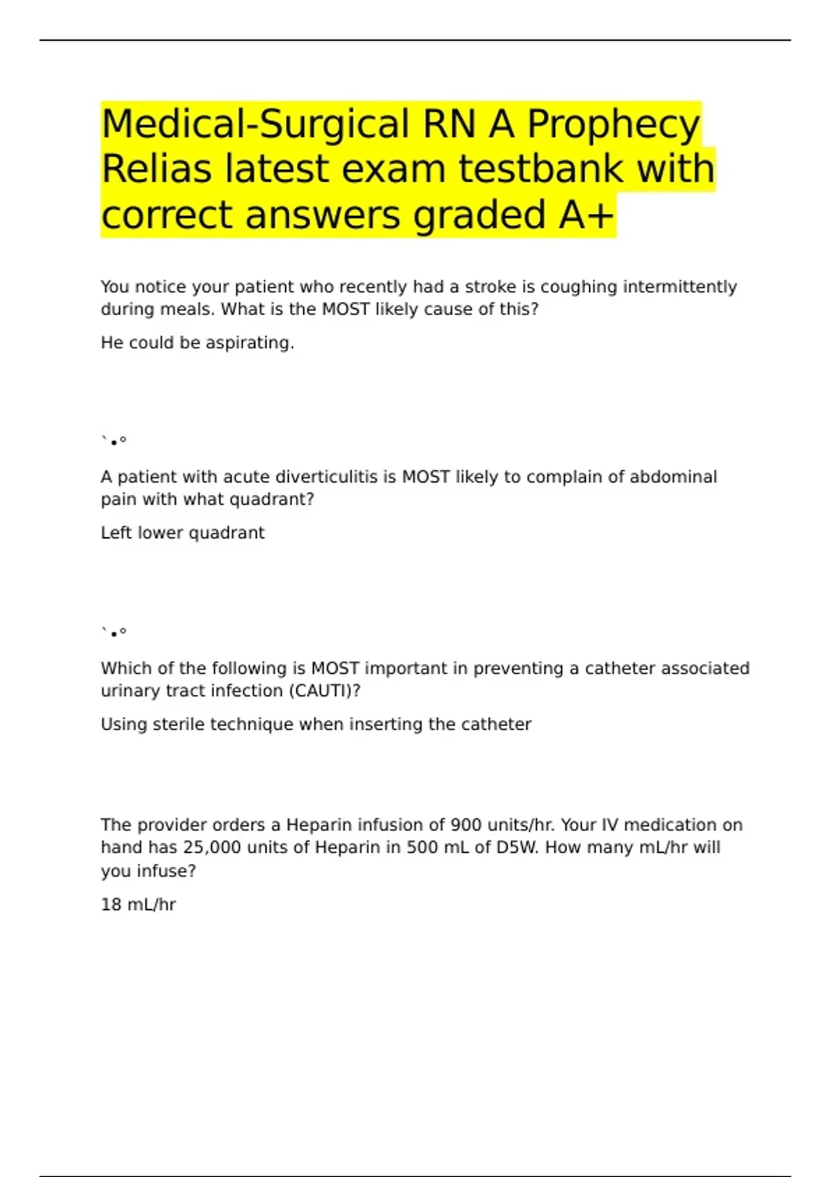 Medical-Surgical RN A Prophecy Relias latest exam testbank with correct answers graded A+.
