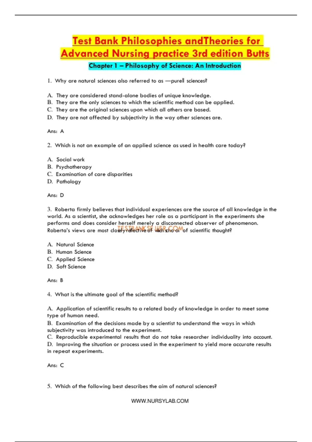 Ans: A TESTBANKSELLER.COM