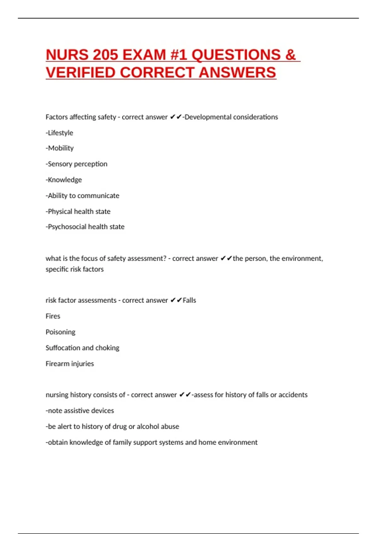 NURS 205 EXAM #1 QUESTIONS & VERIFIED CORRECT ANSWERS