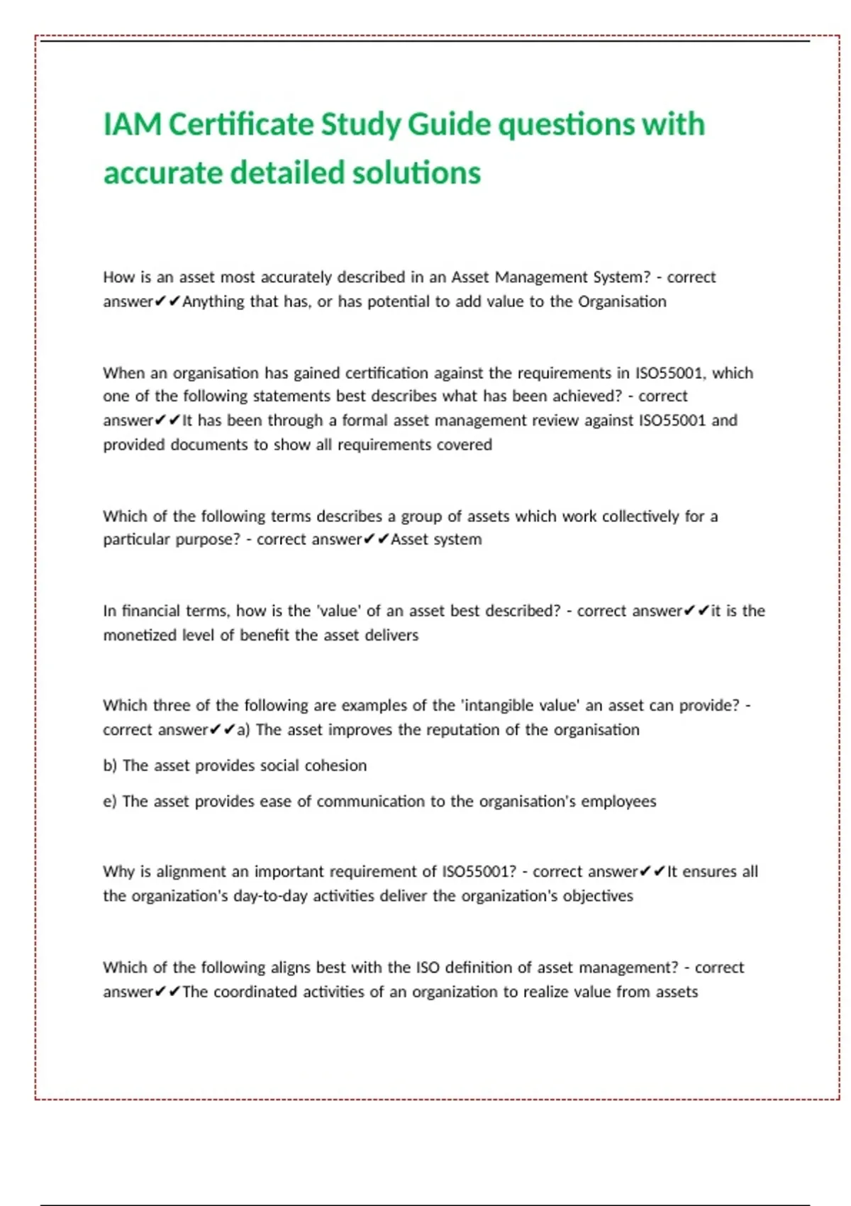 Which three of the following statements about ISO 55000 are correct? - correct answer✔✔-