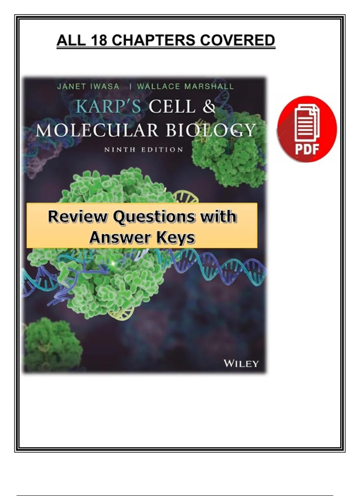 INSTANT PDF DOWNLOAD — Comprehensive Review Questions with Answer Keys for Karp’s Cell and Molecular Biology (9th Edition) by Janet Iwasa & Wallace Marshall. Covers all 18 chapters with expertly crafted MCQs, short answers, and concept reviews. Ideal for biology majors and medical students preparing for exams in molecular mechanisms, genetics, and cell signaling pathways. Cell Biology, Molecular Biology, Karp 9th Edition, Janet Iwasa, Wallace Marshall, Review Questions, Answer Key, Biology Exam Prep, Molecular Genetics, Cellular Mechanisms, DNA Replication, Protein Synthesis, Cell Signaling, Molecular Pathways, Biology Practice Test, Biochemistry Study, Academic PDF, Verified Answers, Wiley Textbook, Biology Review Guide, Study Questions, Cell and Molecular Concepts