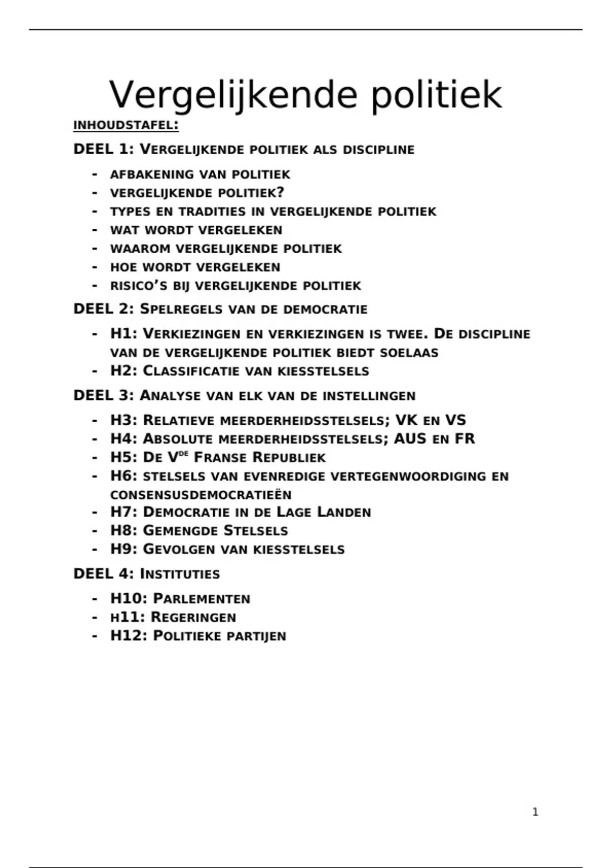 , DEEL 1: VERGELIJKENDE POLITIEK