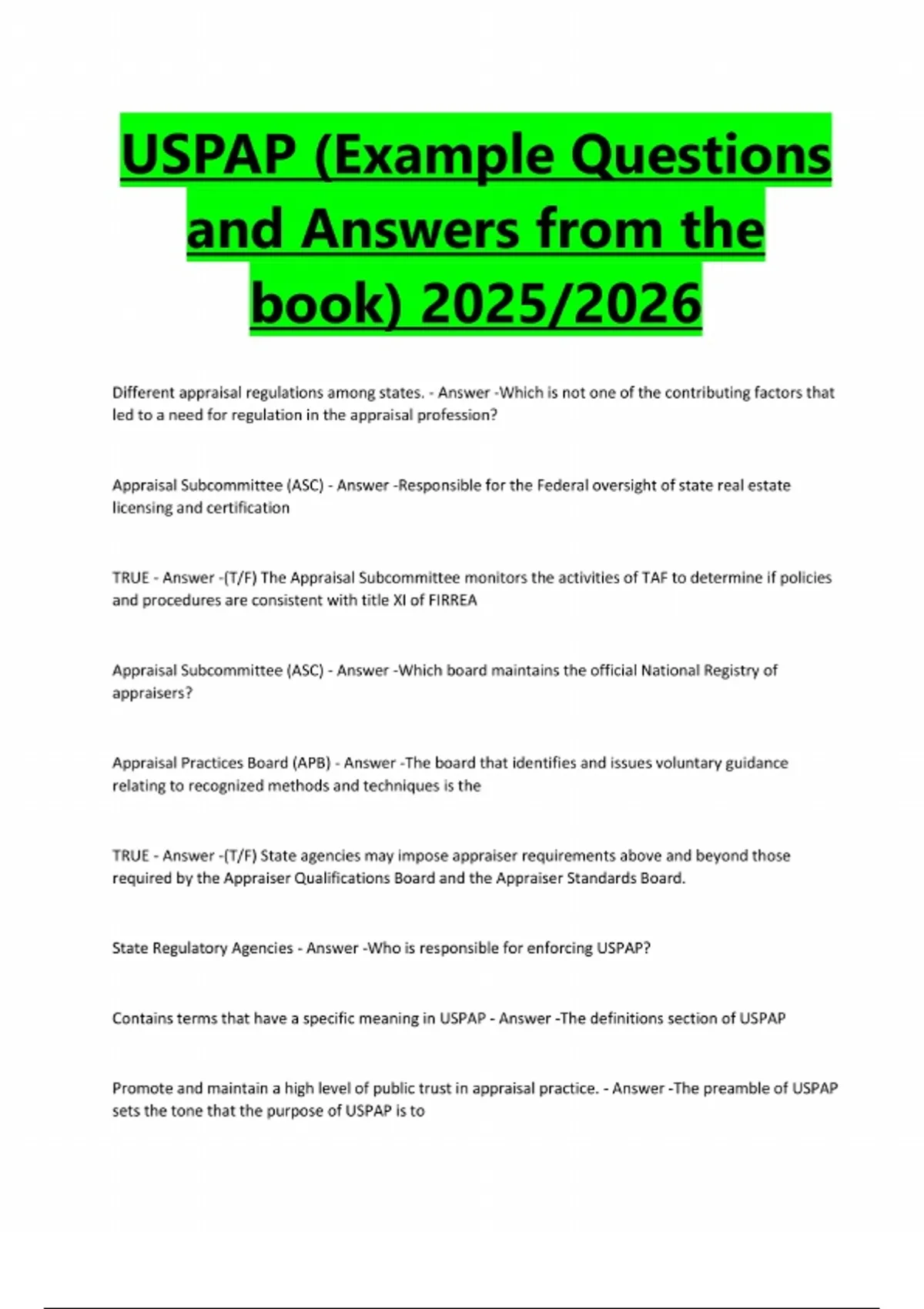 USPAP (Example Questions and Answers from the book) 2025/2026