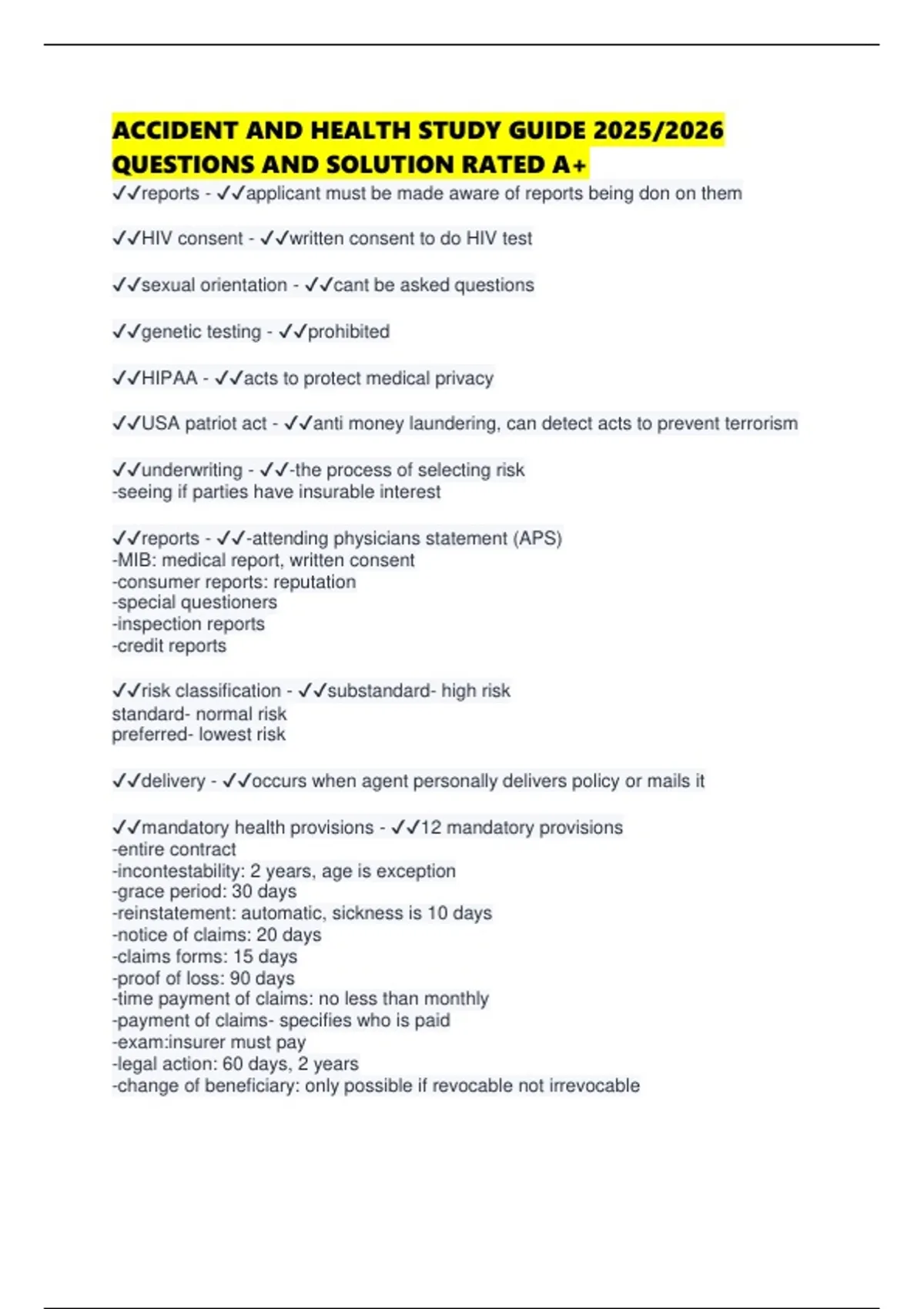 ✔✔mandatory health provisions - ✔✔12 mandatory provisions