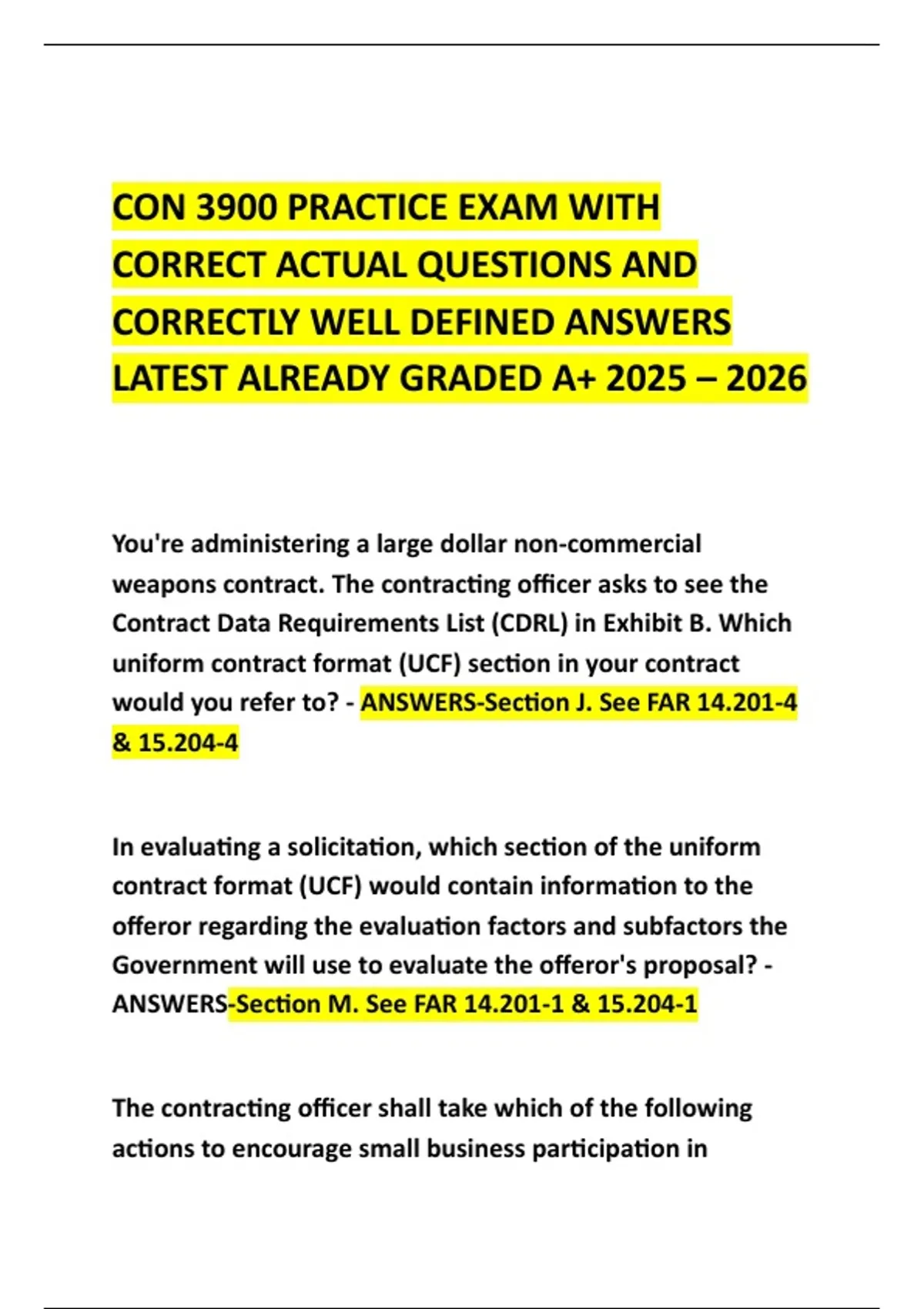 CON 3900 PRACTICE EXAM WITH CORRECT ACTUAL QUESTIONS AND CORRECTLY WELL DEFINED ANSWERS LATEST ALREADY GRADED A+ 2025 – 2026