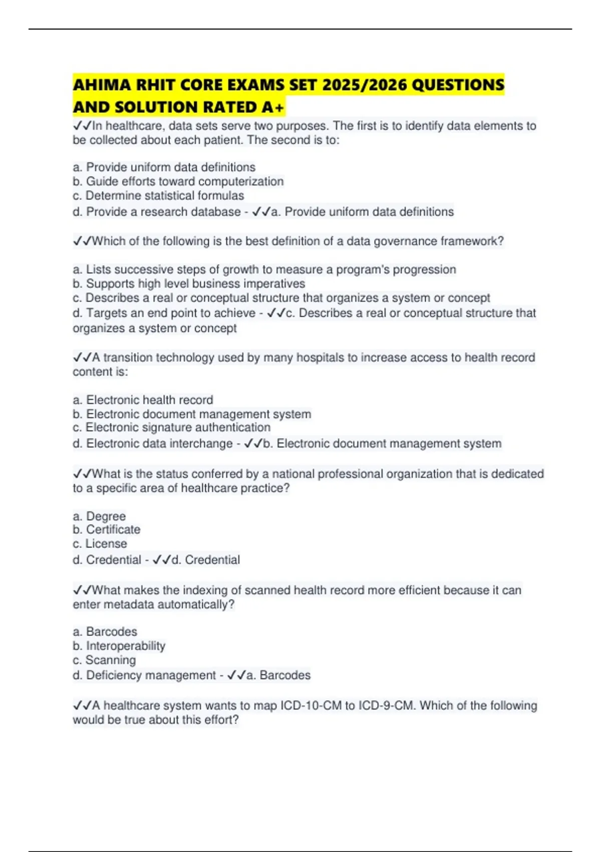 ✔✔A healthcare system wants to map ICD-10-CM to ICD-9-CM. Which of the following