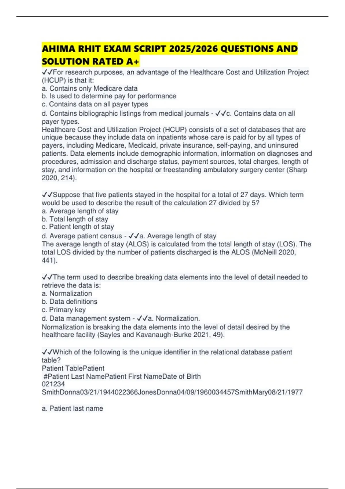 ✔✔For research purposes, an advantage of the Healthcare Cost and Utilization Project