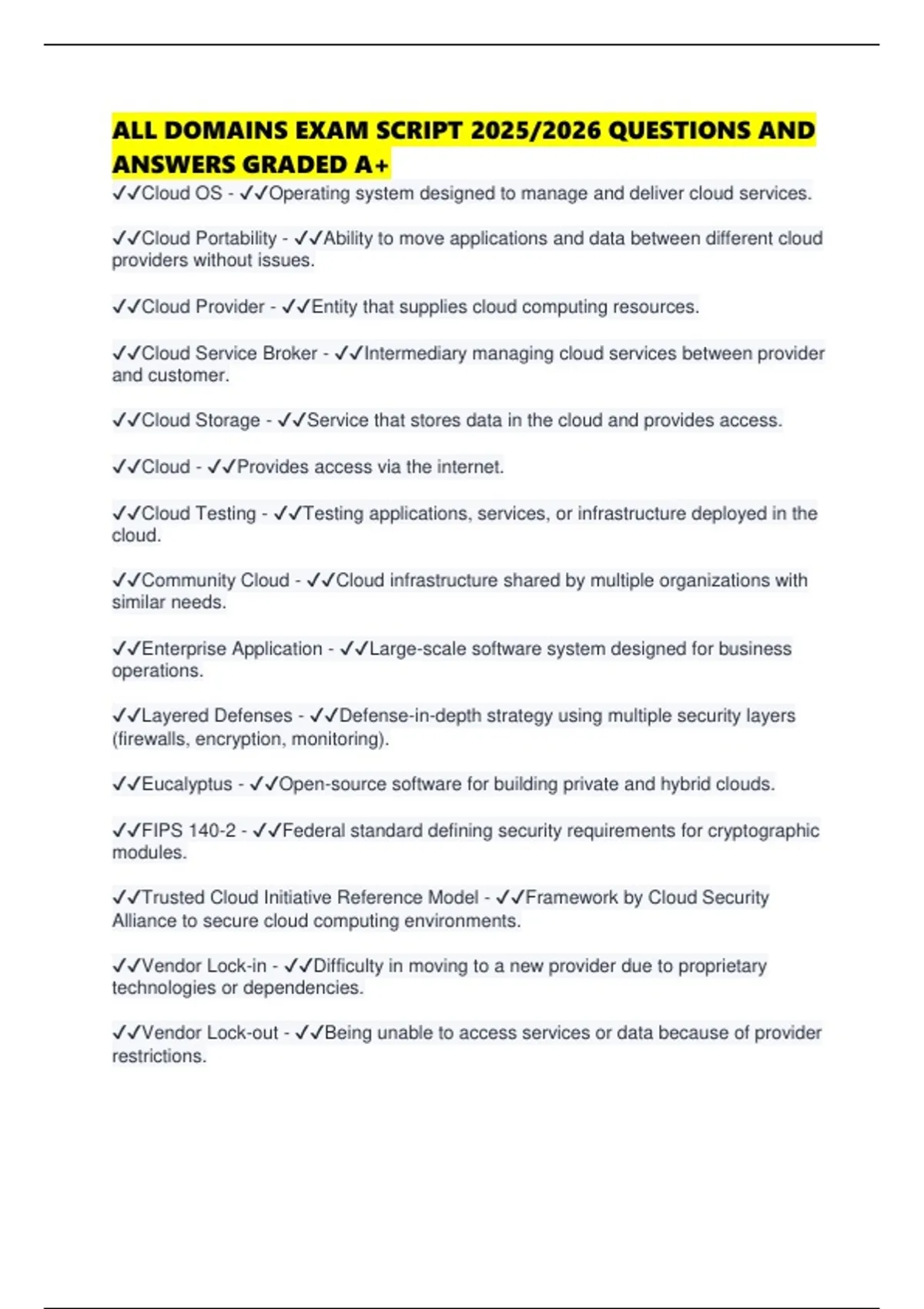 ALL DOMAINS EXAM SCRIPT 2025/2026 QUESTIONS AND ANSWERS GRADED A+