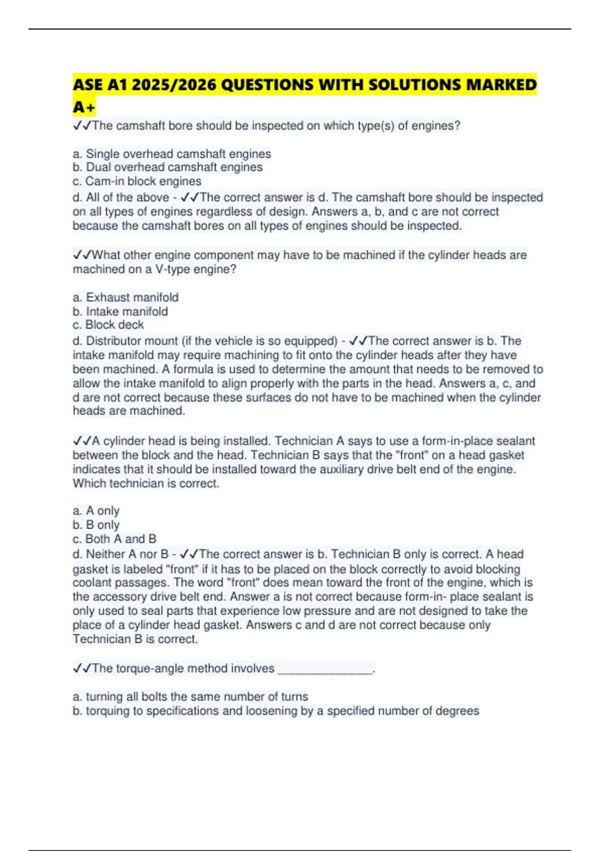 specified torque and then turning them a specified number of degrees. Answer a is not