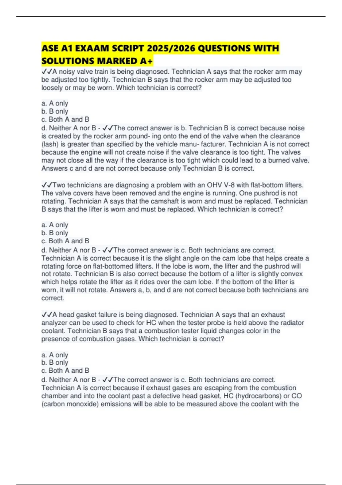 d. Neither A nor B - ✔✔The correct answer is b. Technician B is correct because the