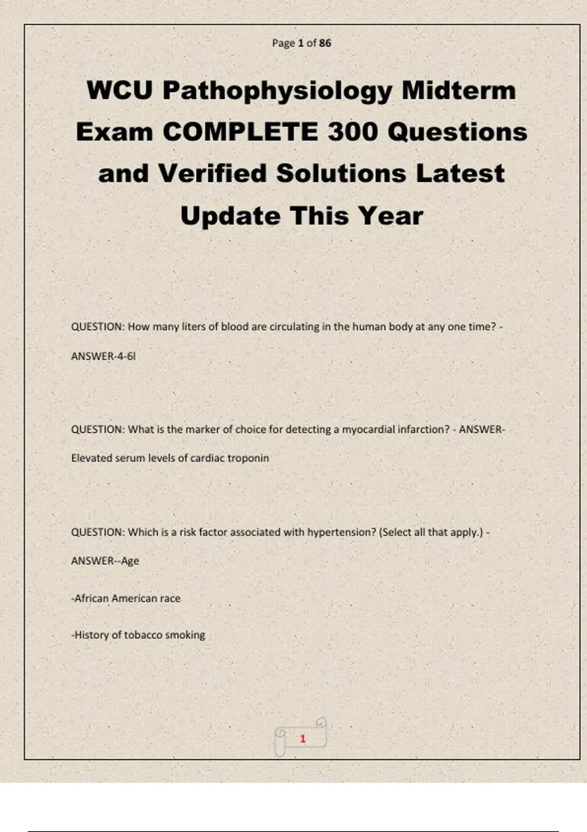 WCU Pathophysiology Midterm Exam COMPLETE 300 Questions and Verified Solutions Latest Update This Year