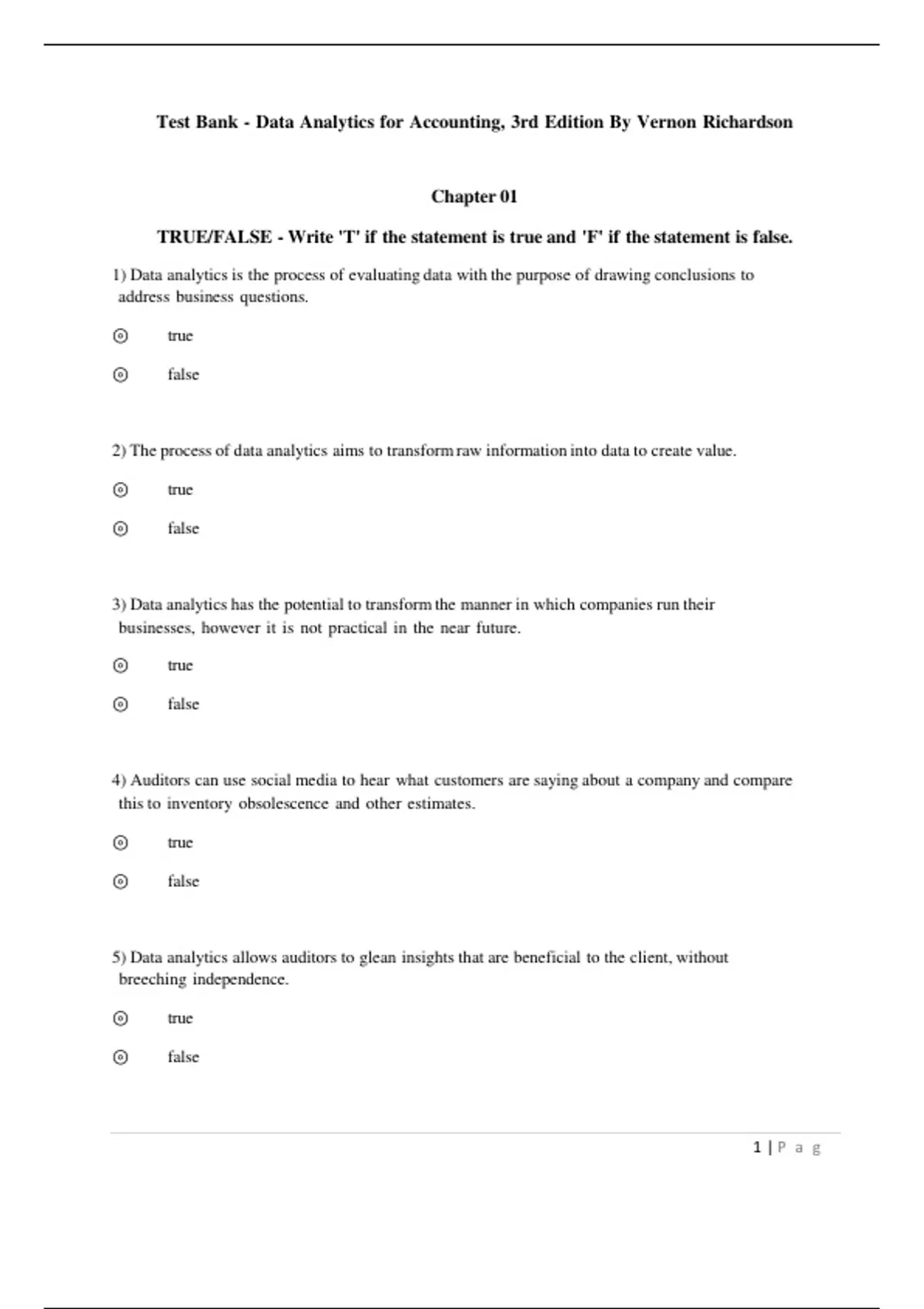 Test Bank - Data Analytics for Accounting, 3rd Edition By Vernon Richardson