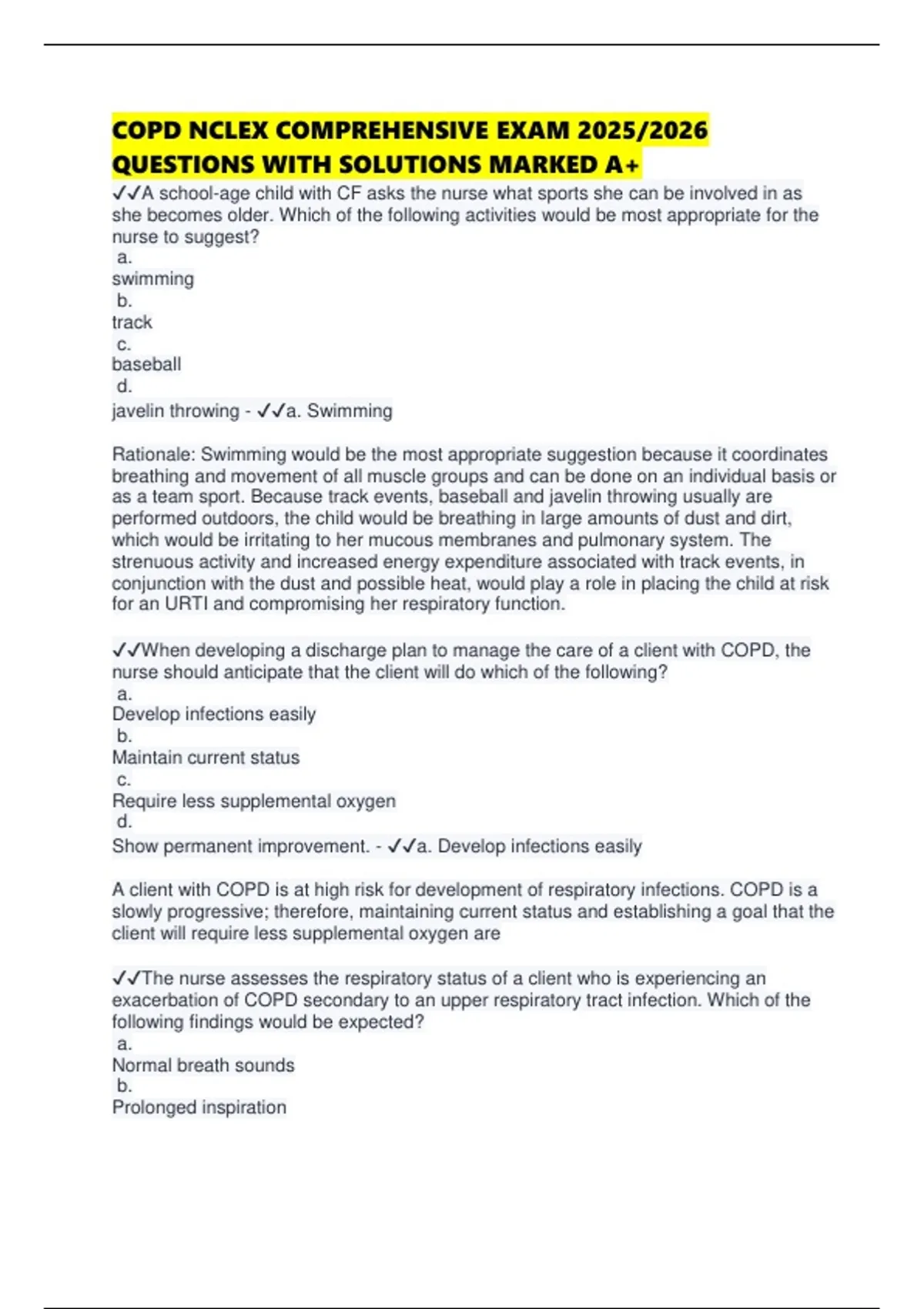 COPD NCLEX COMPREHENSIVE EXAM 2025/2026 QUESTIONS WITH SOLUTIONS MARKED A+
