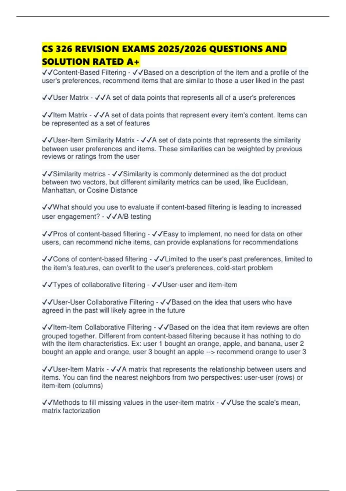 ✔✔Content-Based Filtering - ✔✔Based on a description of the item and a profile of the