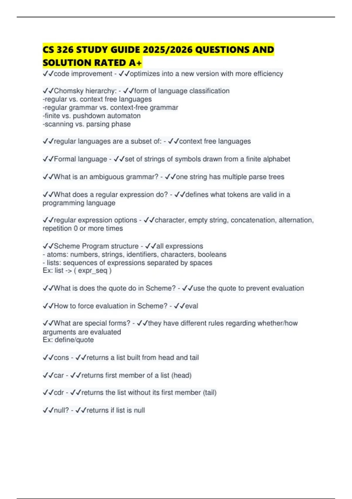 ✔✔What is does the quote do in Scheme? - ✔✔use the quote to prevent evaluation
