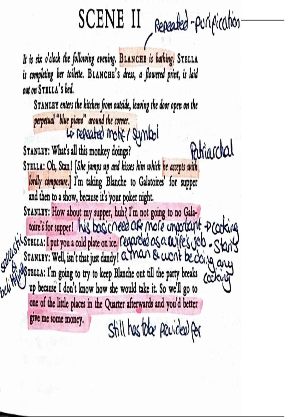An extremely thorough, page-by-page analysis of A Streetcar Named Desire Scene 2.