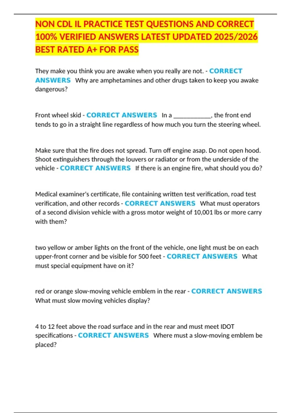 NON CDL IL PRACTICE TEST QUESTIONS AND CORRECT 100% VERIFIED ANSWERS LATEST UPDATED 2025/2026 BEST RATED A+ FOR PASS