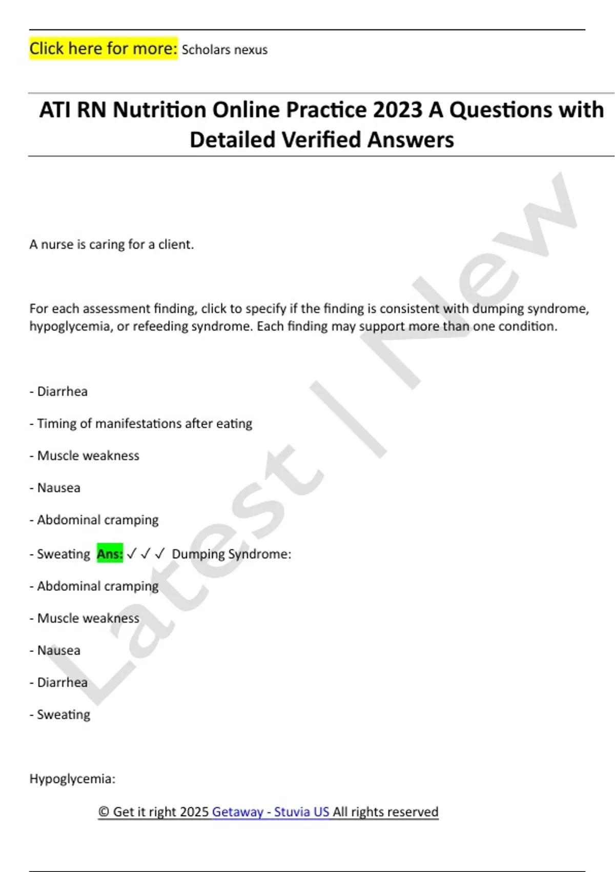 ATI RN Nutrition Online Practice 2023 A Questions with Detailed Verified Answers