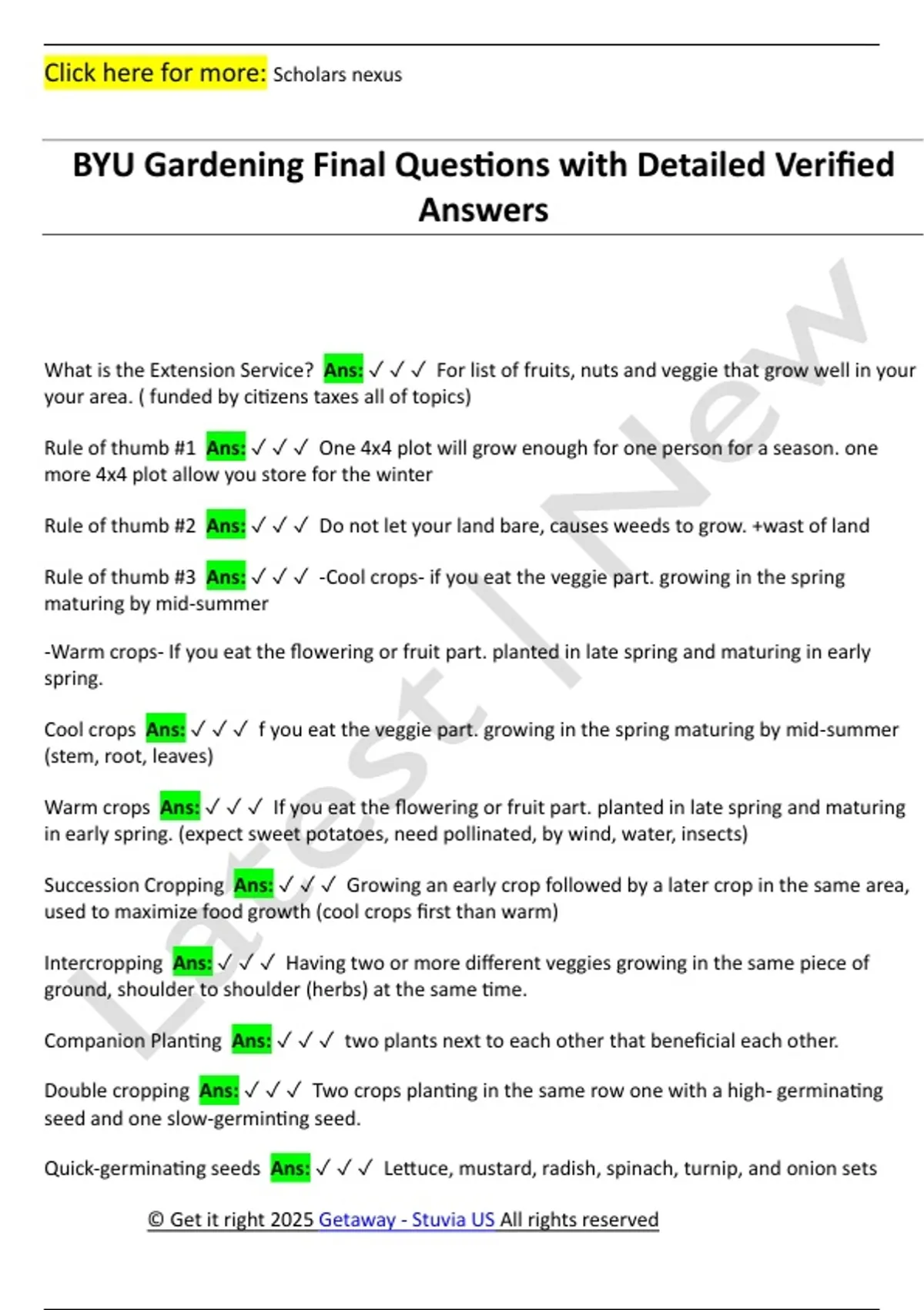 BYU Gardening Final Questions with Detailed Verified
