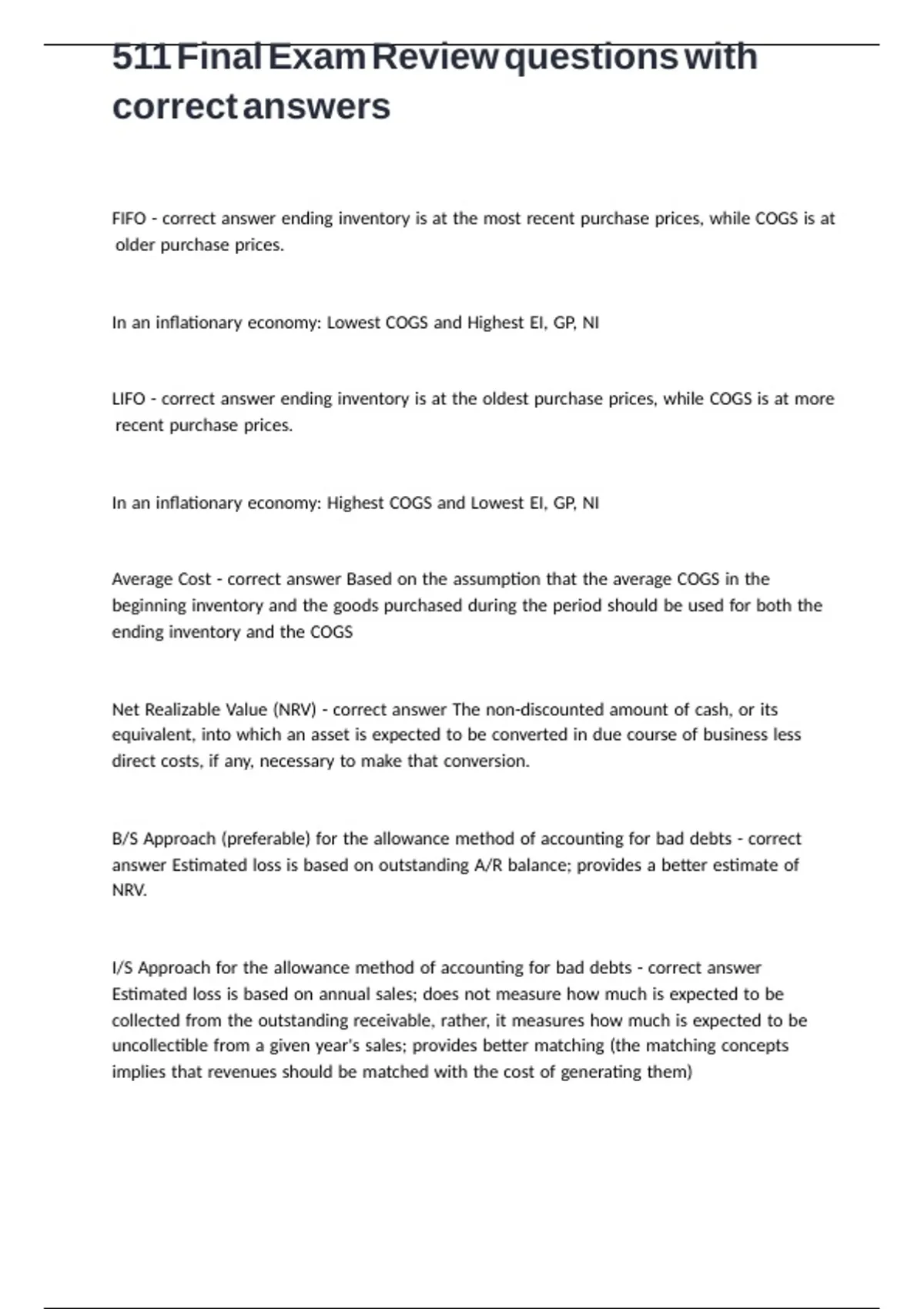 511 Final Exam Review questions with