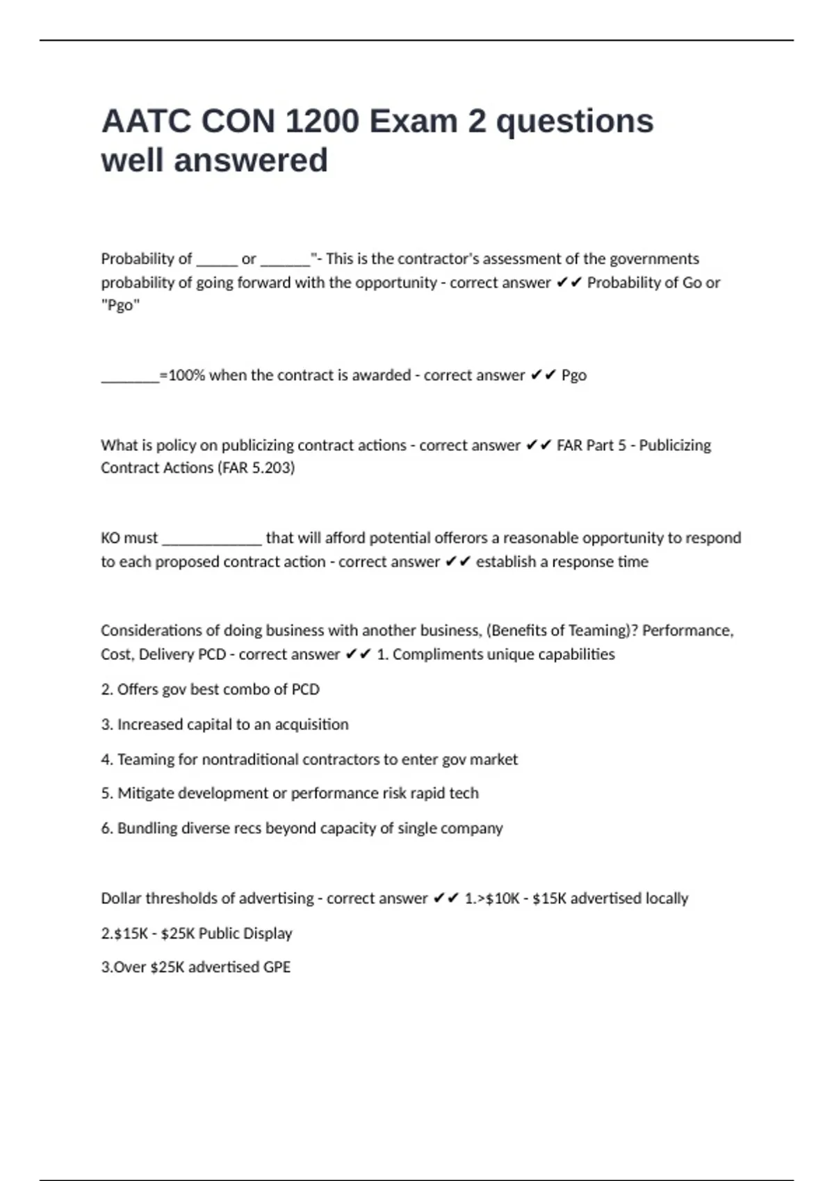 _______=100% when the contract is awarded - correct answer ✔✔ Pgo