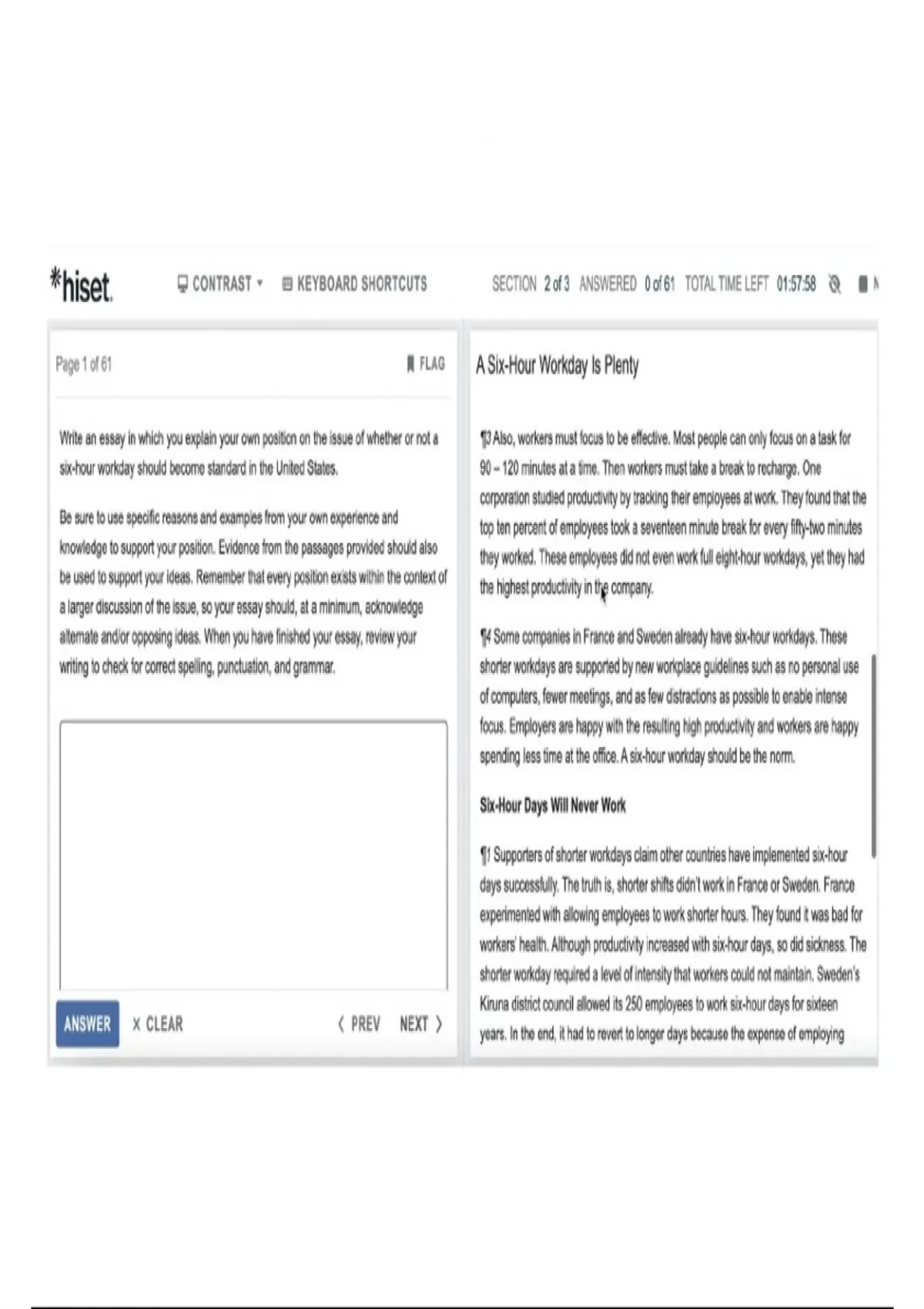 This document is the official Writing examination for the HiSET high school equivalency test, reflecting the current standards for the 2025/2026 testing cycle. It provides a complete and authentic review resource for Section 2 of the exam, featuring a full set of 61 questions with verified answers to assess and strengthen writing proficiency. The content is structured to evaluate a comprehensive range of writing and language skills through two primary task types: > Constructed Response: The exam begins with an essay prompt requiring test-takers to develop a well-reasoned argument on a contemporary issue (e.g., the viability of a six-hour workday), using evidence from provided source texts and acknowledging opposing viewpoints. > Multiple-Choice Revision and Editing: The majority of the exam consists of multiple-choice questions that assess the ability to revise and edit drafts for: > Organization and Development: Evaluating thesis statements, supporting details, paragraph transitions, and overall coherence. > Language Facility and Word Choice: Selecting precise vocabulary, improving sentence structure, and maintaining an appropriate tone. > Grammar, Usage, and Mechanics: Applying standard conventions of English, including punctuation, capitalization, verb tense, and pronoun agreement. > Sentence Structure: Combining sentences for clarity and flow, and correcting run-ons and fragments. This resource is indispensable for candidates aiming to gauge their proficiency in constructing a coherent argument and demonstrating command of written English conventions. It serves as a definitive tool for self-assessment and final preparation for the HiSET Writing section, ensuring familiarity with the test's dual-focus structure and the analytical depth required for success.