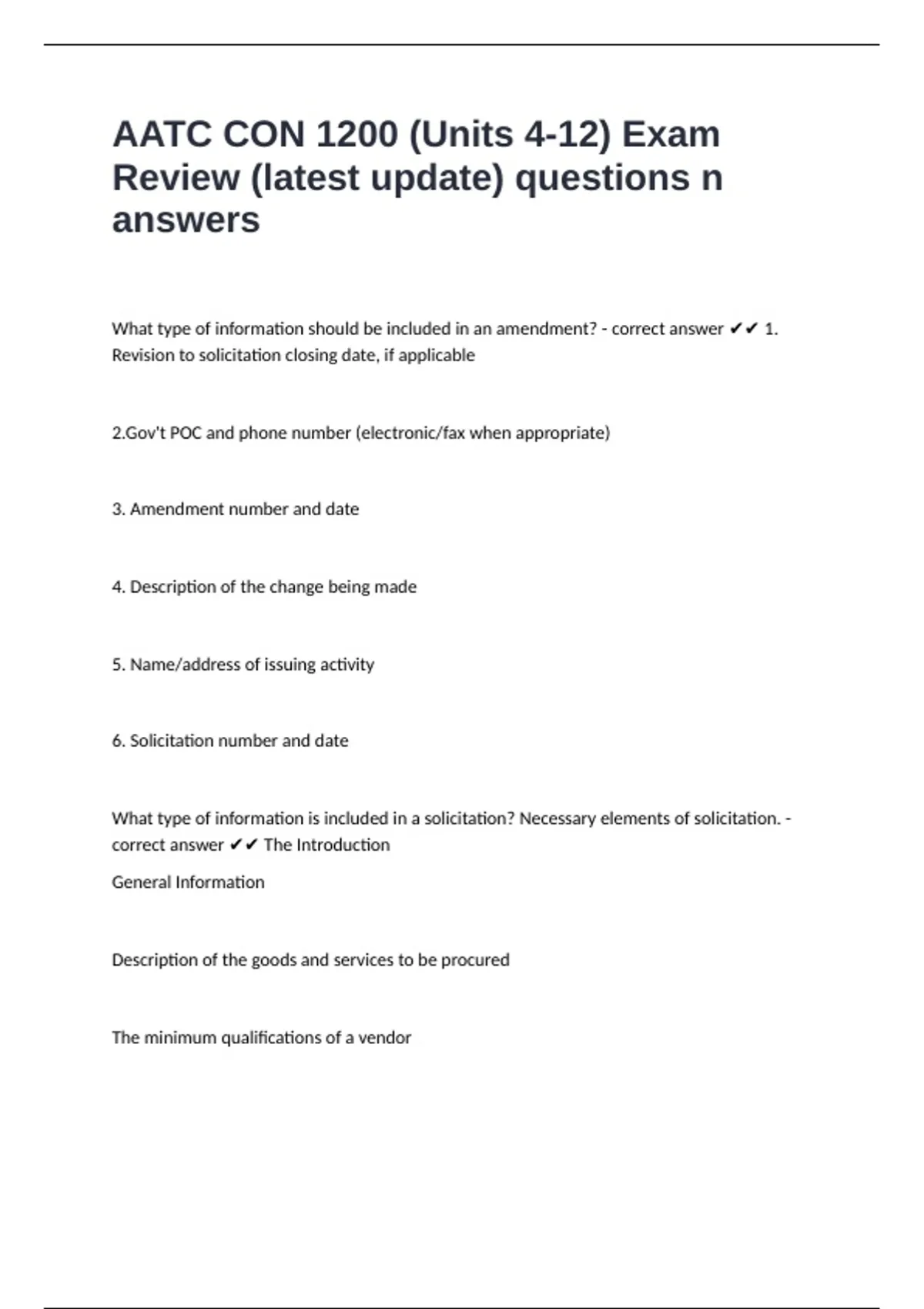 What are changes to solicitations called? - correct answer ✔✔ Amendments