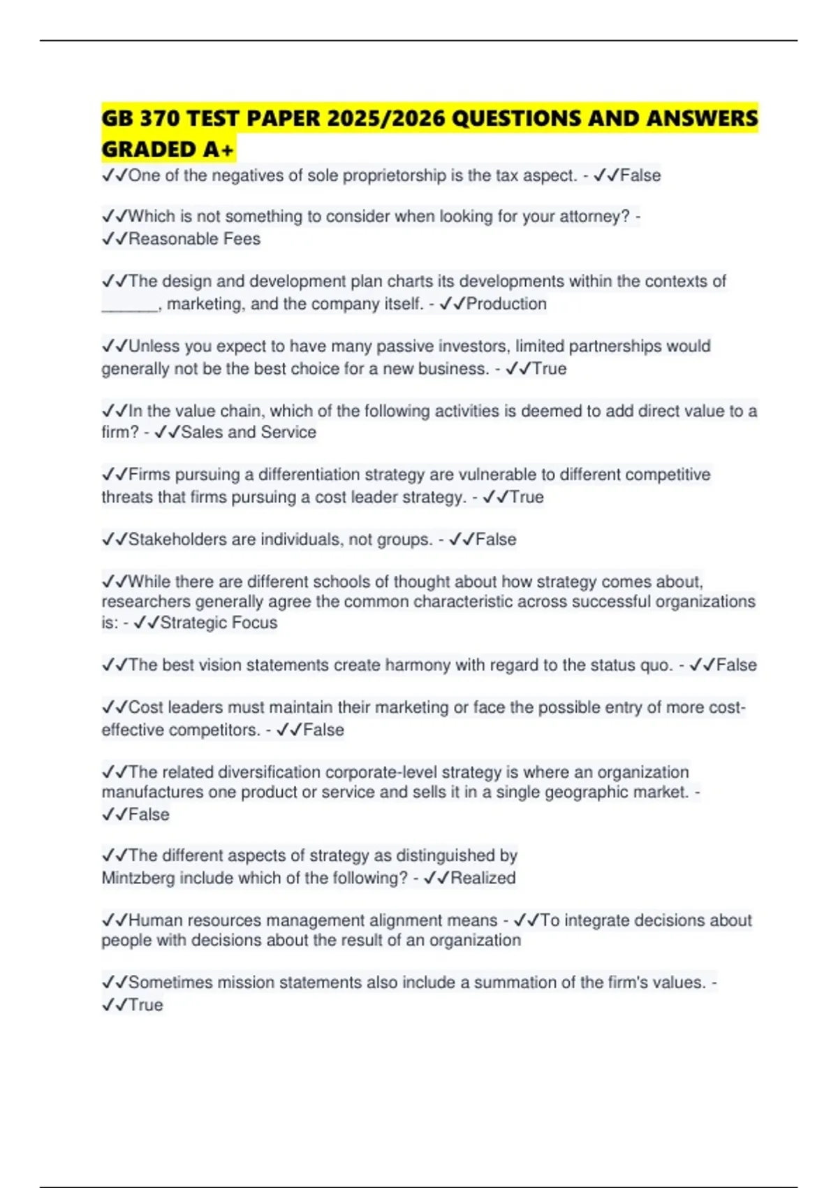 ✔✔Planning starts with vision and mission, and concludes with strategizing. - ✔✔False