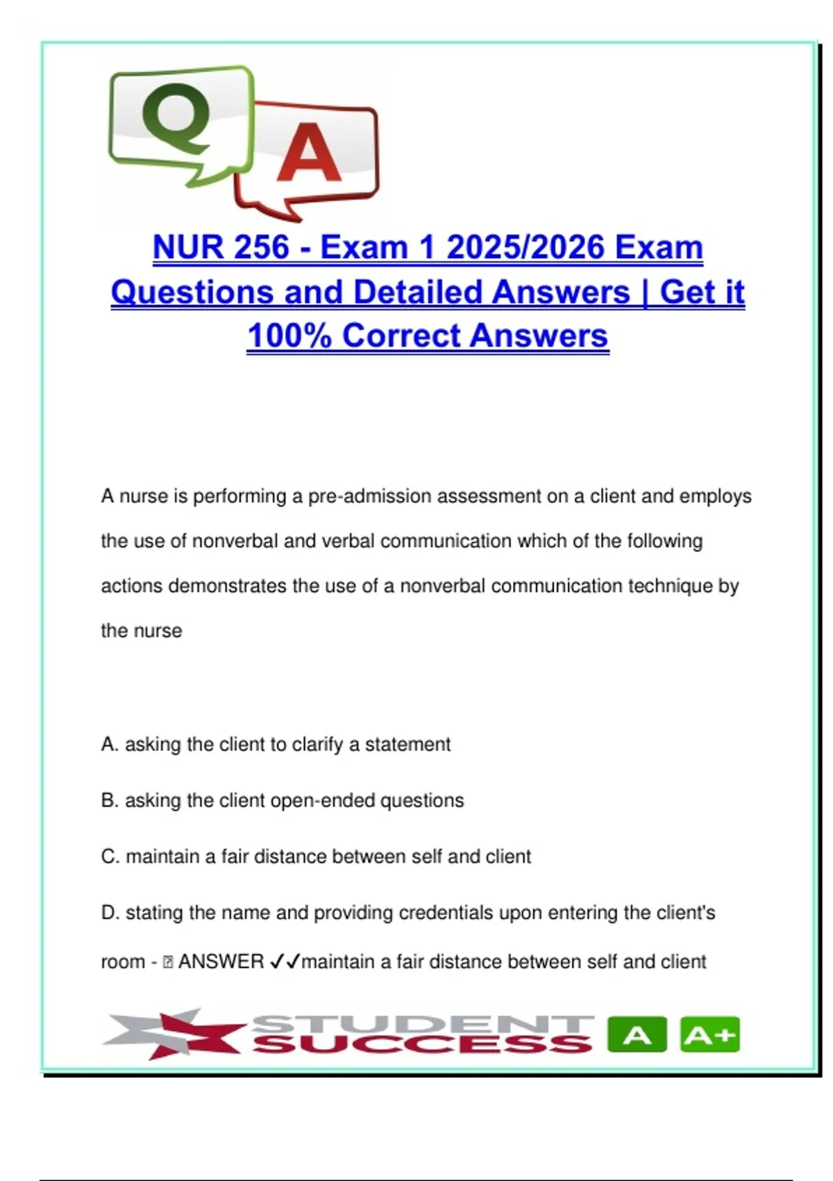 room - 🧠 ANSWER ✔✔maintain a fair distance between self and client