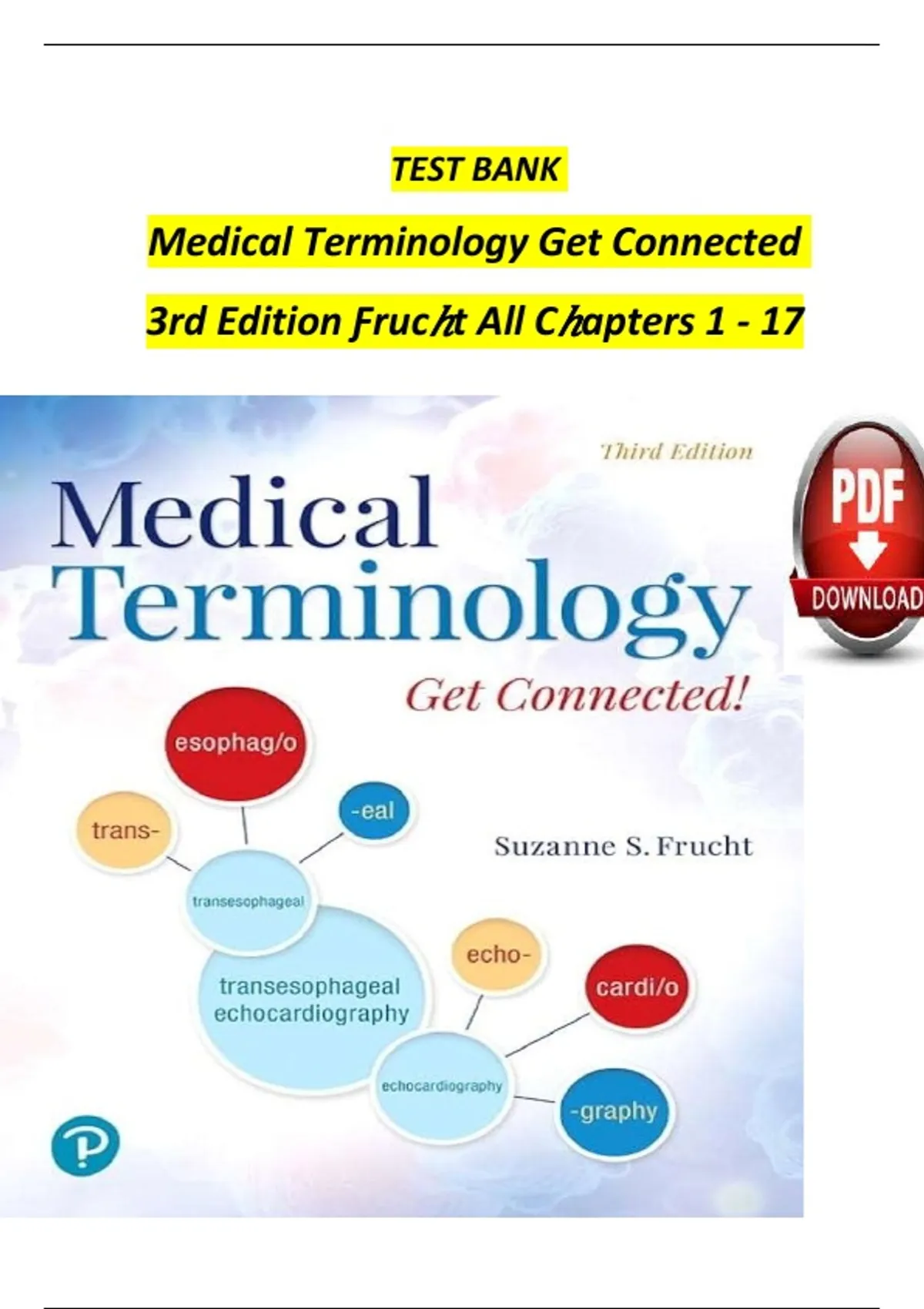 This exhaustive test bank covers Medical Terminology: Get Connected, 3rd Edition, encompassing Chapters 1 through 17. It includes multiple-choice, true/false, and short-answer questions complete with verified answers. Tailored for students in medical terminology courses, it enhances mastery of terms, word parts, disease processes, diagnostic and procedural language. Ideal for exam preparation and review. medical terminology, Get Connected, MED150, test bank, vocabulary, word parts, health science, medical language, exam prep, study guide, Suzanne Frucht