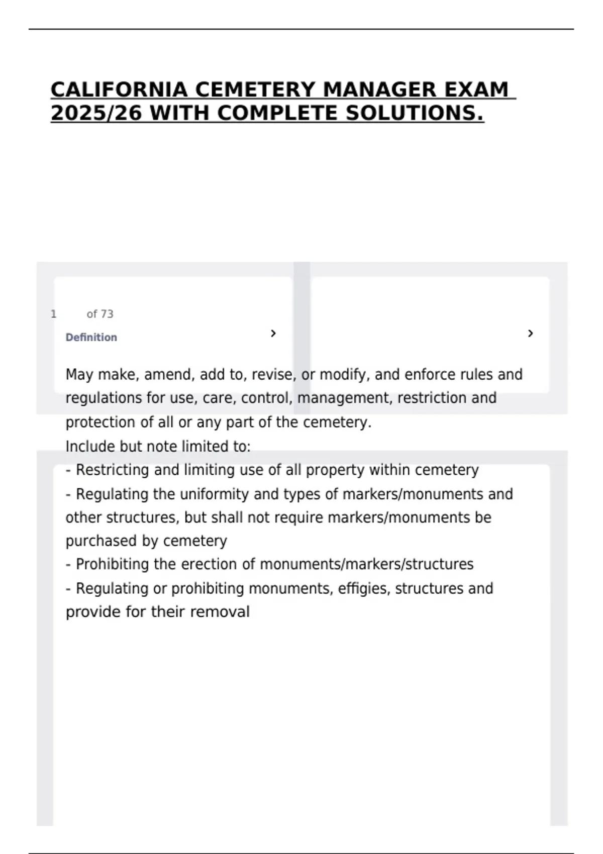 - Restricting and limiting use of all property within cemetery