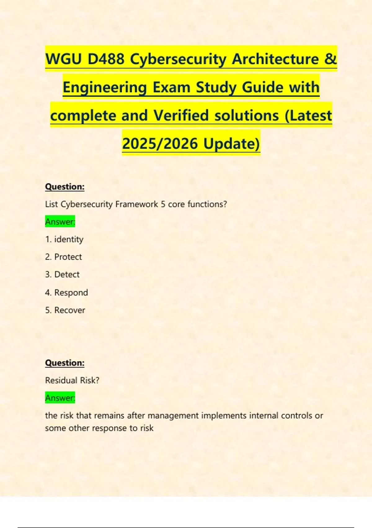 WGU D488 Cybersecurity Architecture & Engineering Exam Study Guide with complete and Verified solutions (Latest 2025/2026 Update) WGU D488 Cybersecurity Architecture & Engineering Exam Study Guide with complete and Verified solutions (Latest 2025/2026 Update)
