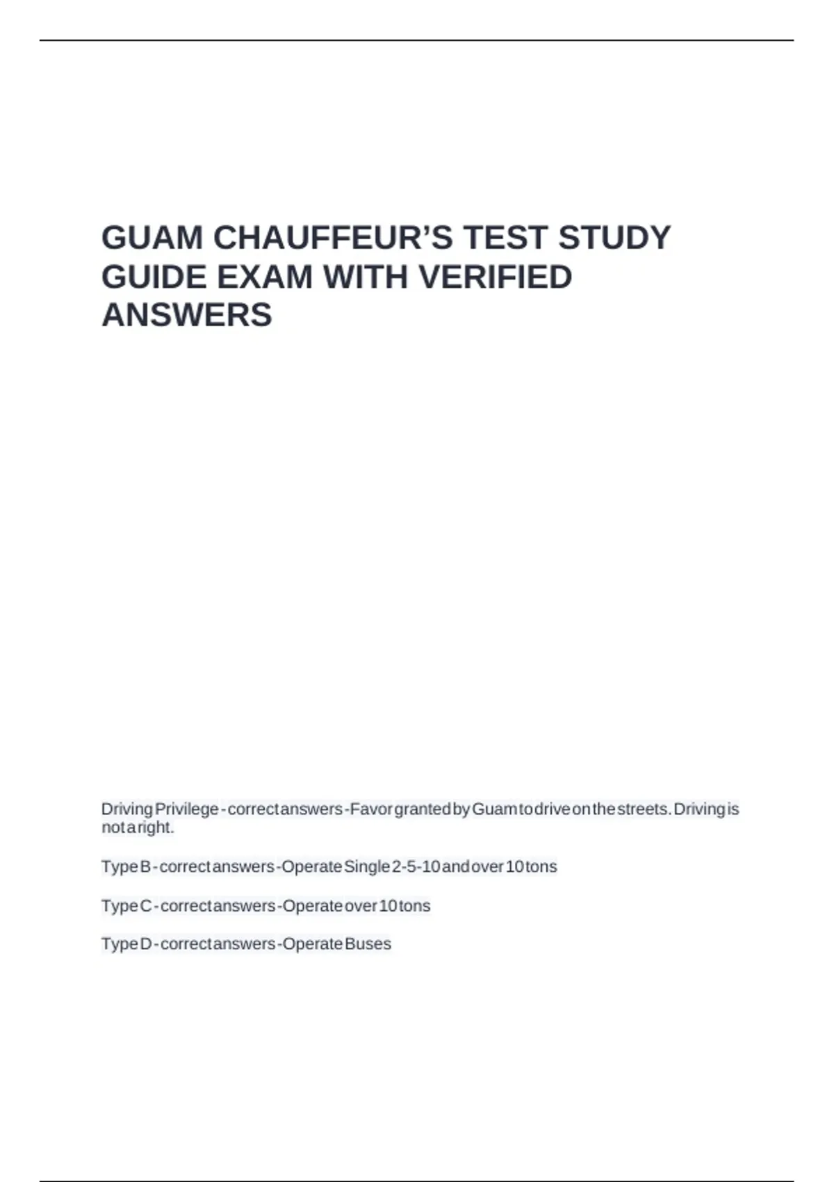 GUAM CHAUFFEUR’S TEST STUDY