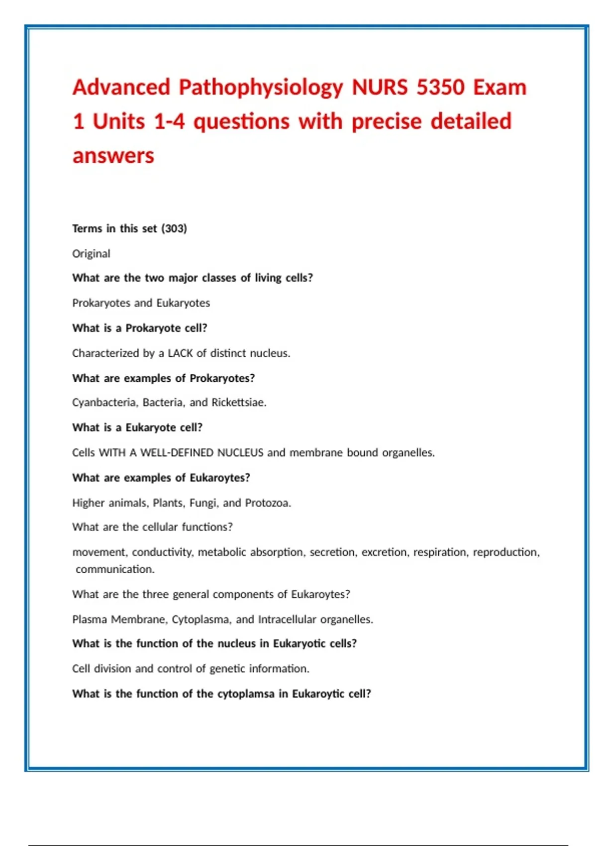 Advanced Pathophysiology NURS 5350 Exam 1 Units 1-4 questions with precise detailed answers