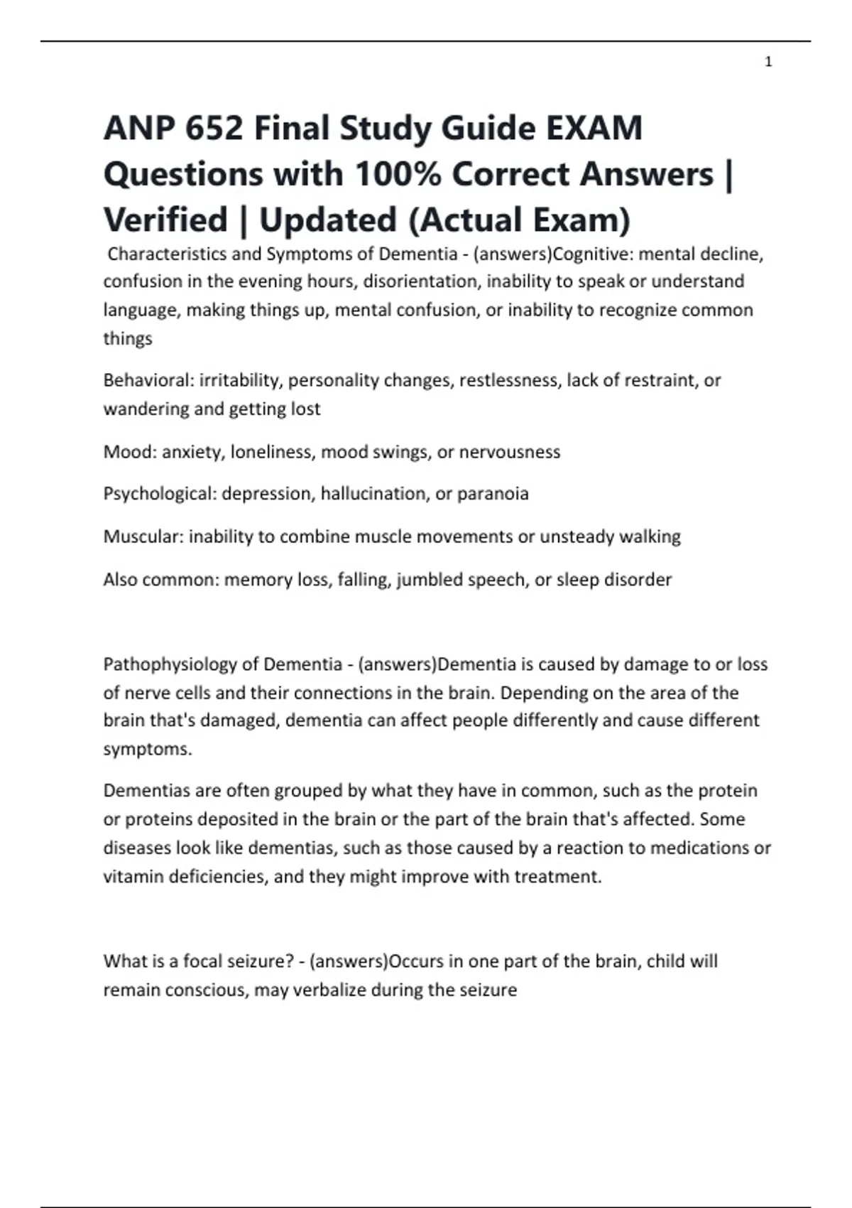 Pathophysiology of Dementia - (answers)Dementia is caused by damage to or loss