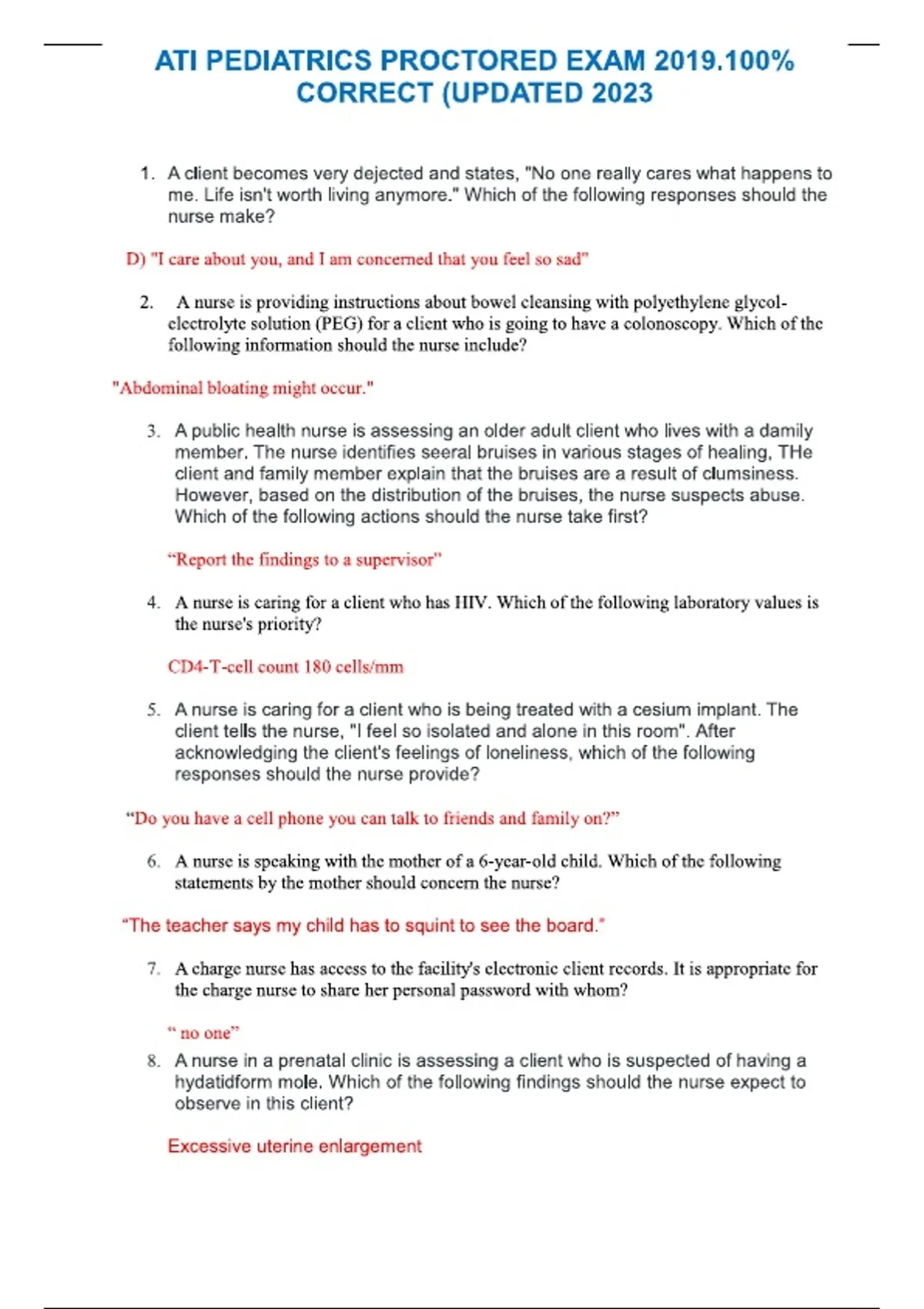 ATI PEDIATRICS PROCTORED EXAM 2019.100% CORRECT (UPDATED 2023