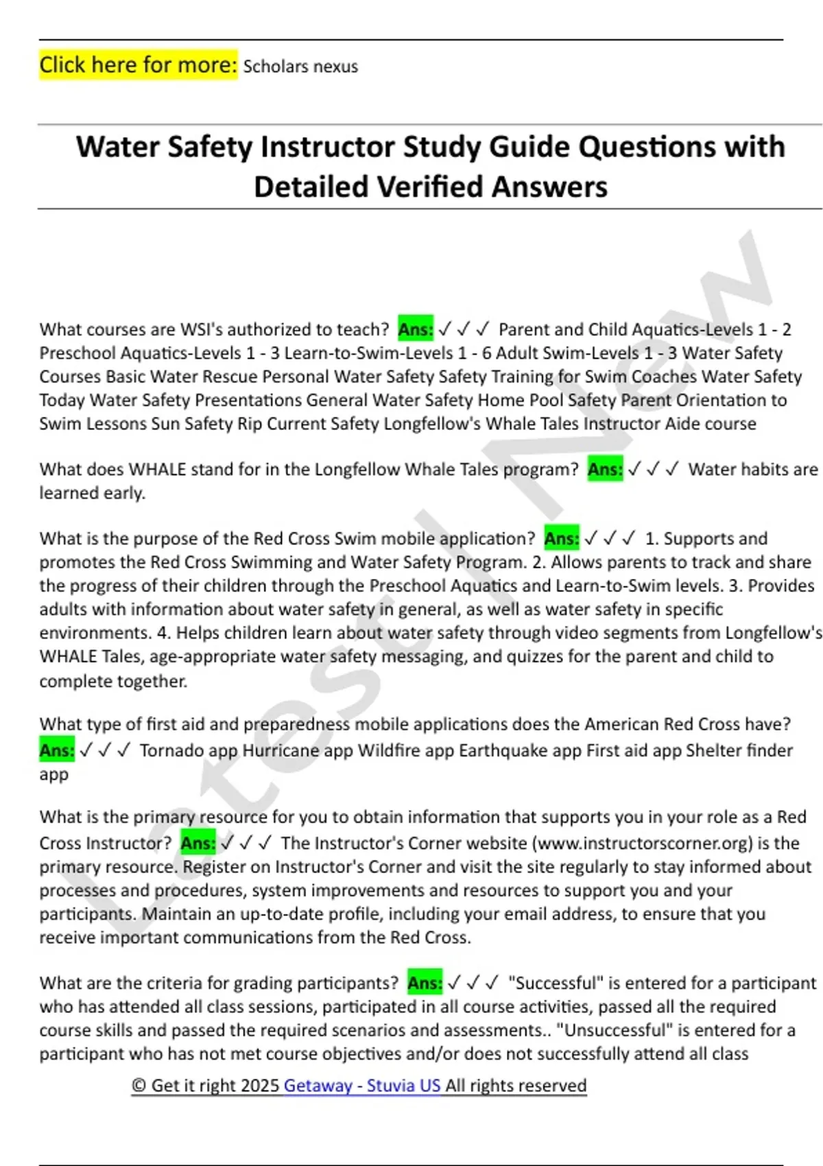 What is the primary goal of a Water Safety Instructor? Ans: ✓ ✓ ✓ To enhance each student's