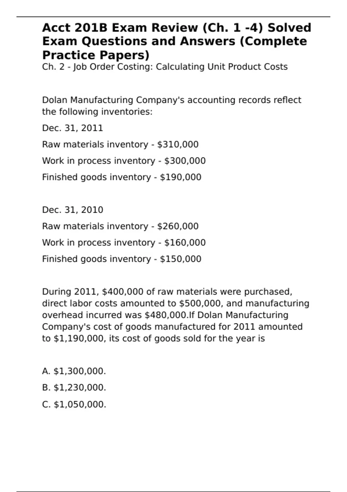 , Acct 201B Exam Review (Ch. 1 -4) Solved