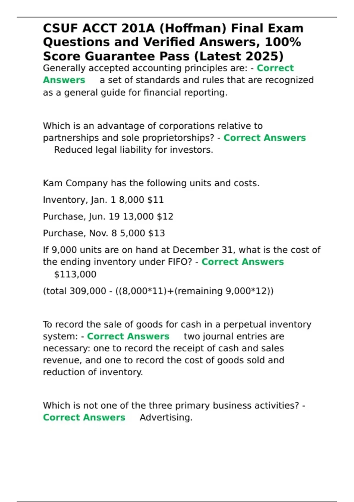 , CSUF ACCT 201A (Hoffman) Final Exam
