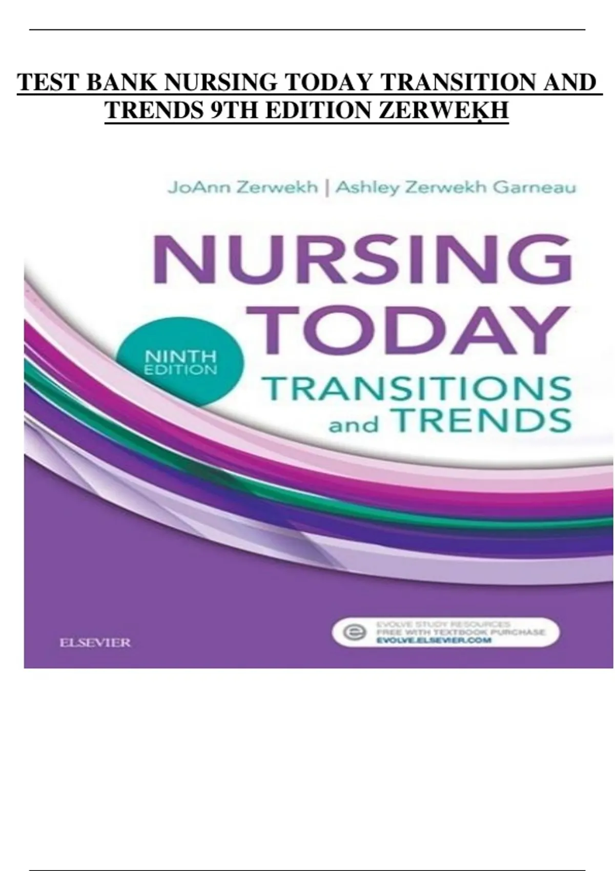 This document contains the complete test bank for Nursing Today: Transition and Trends (9th Edition) by JoAnn Zerwekh and co-authors. It includes comprehensive multiple-choice questions, case-based scenarios, and critical thinking exercises covering all chapters. The material focuses on professional development, leadership, healthcare delivery systems, ethics, legal issues, and current trends in the nursing profession. Ideal for nursing students and professionals preparing for exams or transitioning into practice.