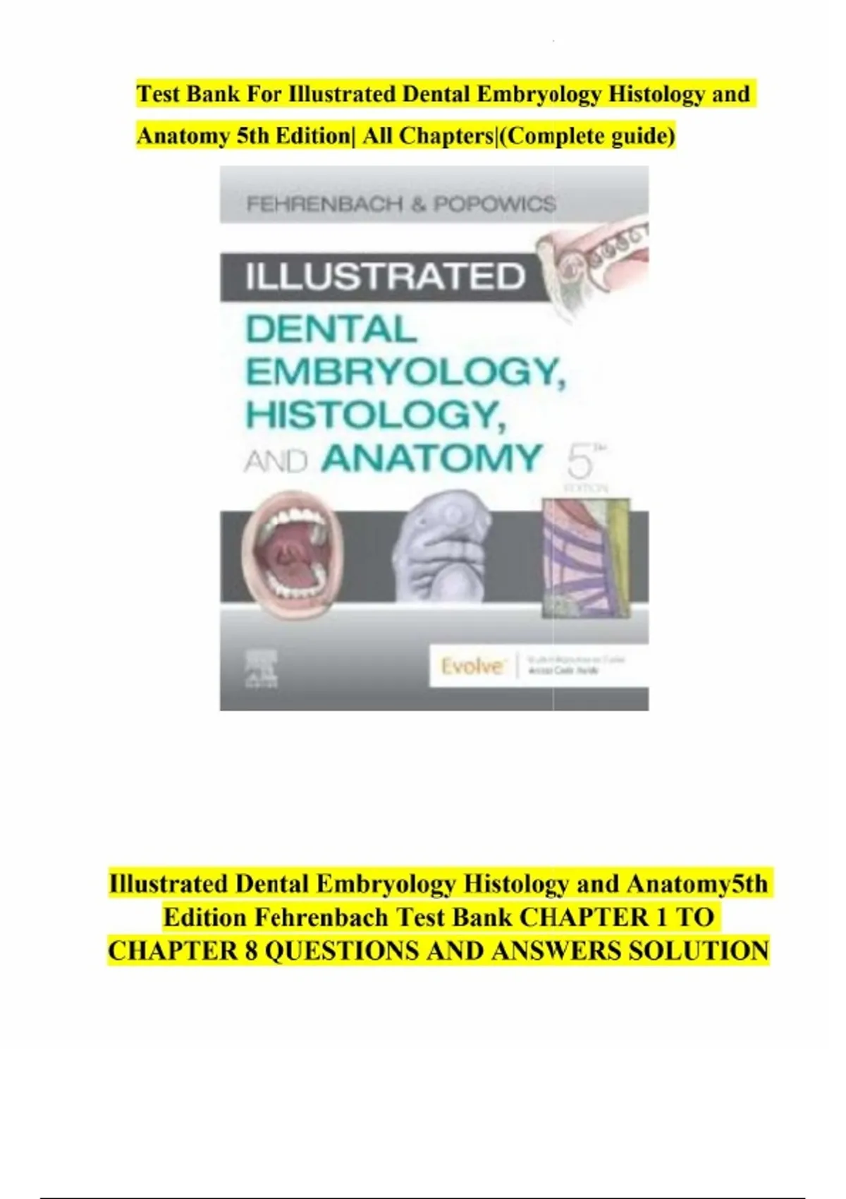 Test Bank For Illustrated Dental Embryology Histology and Anatomy 5th Edition By Margaret J. Fehrenbach