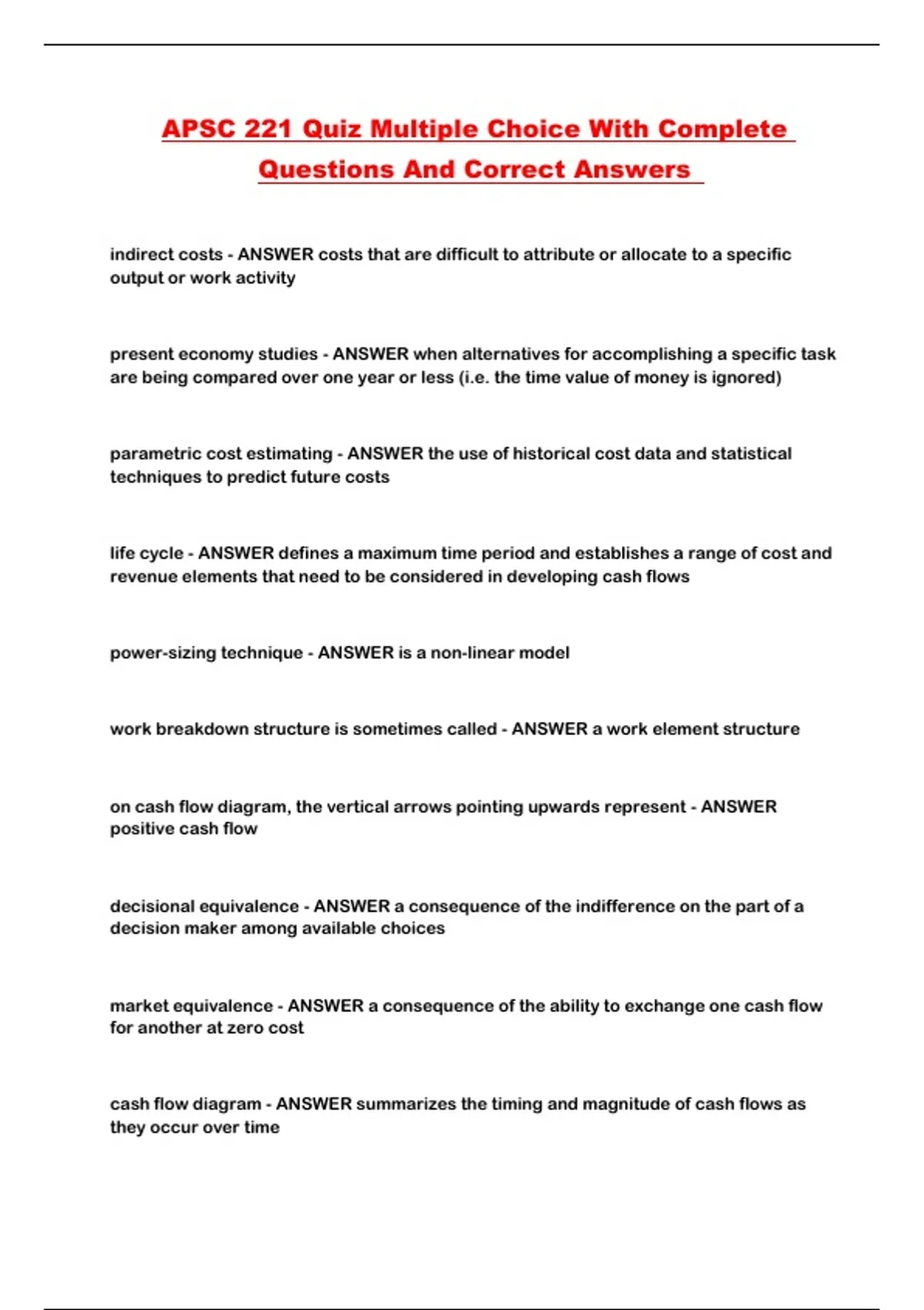 APSC 221 Quiz Multiple Choice With Complete Questions And Correct Answers