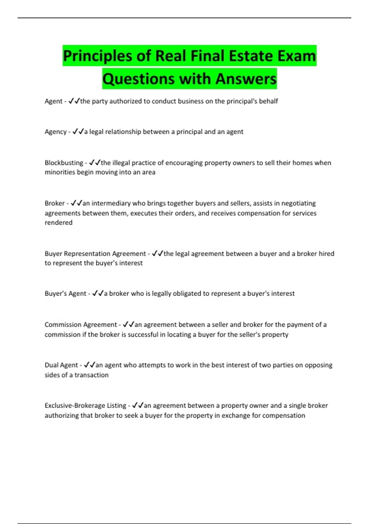 Listing Agreement - ✔✔the legal agreement between a broker and a property owner that