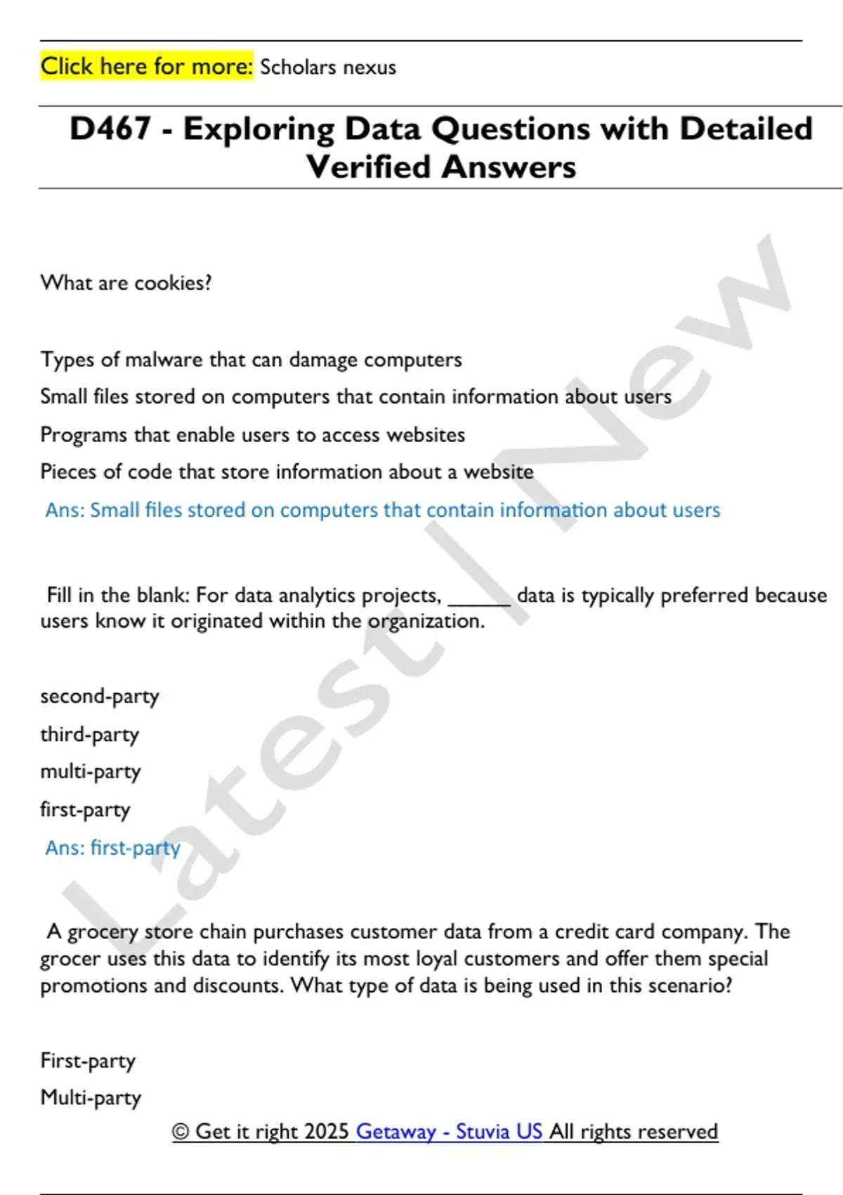 D467 - Exploring Data Questions with Detailed Verified Answers