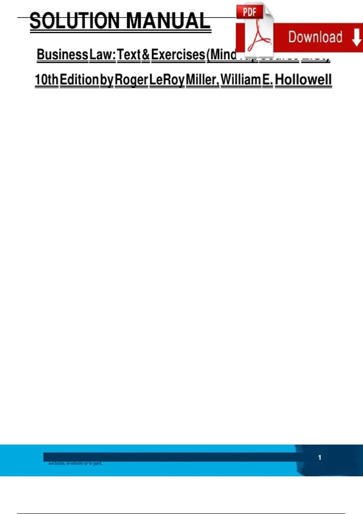 Solution Manual For Business Law: Text & Exercises, 10th Edition by Roger LeRoy Miller, William E. Hollowell, Verified Chapters 1 - 43, Complete Newest Version