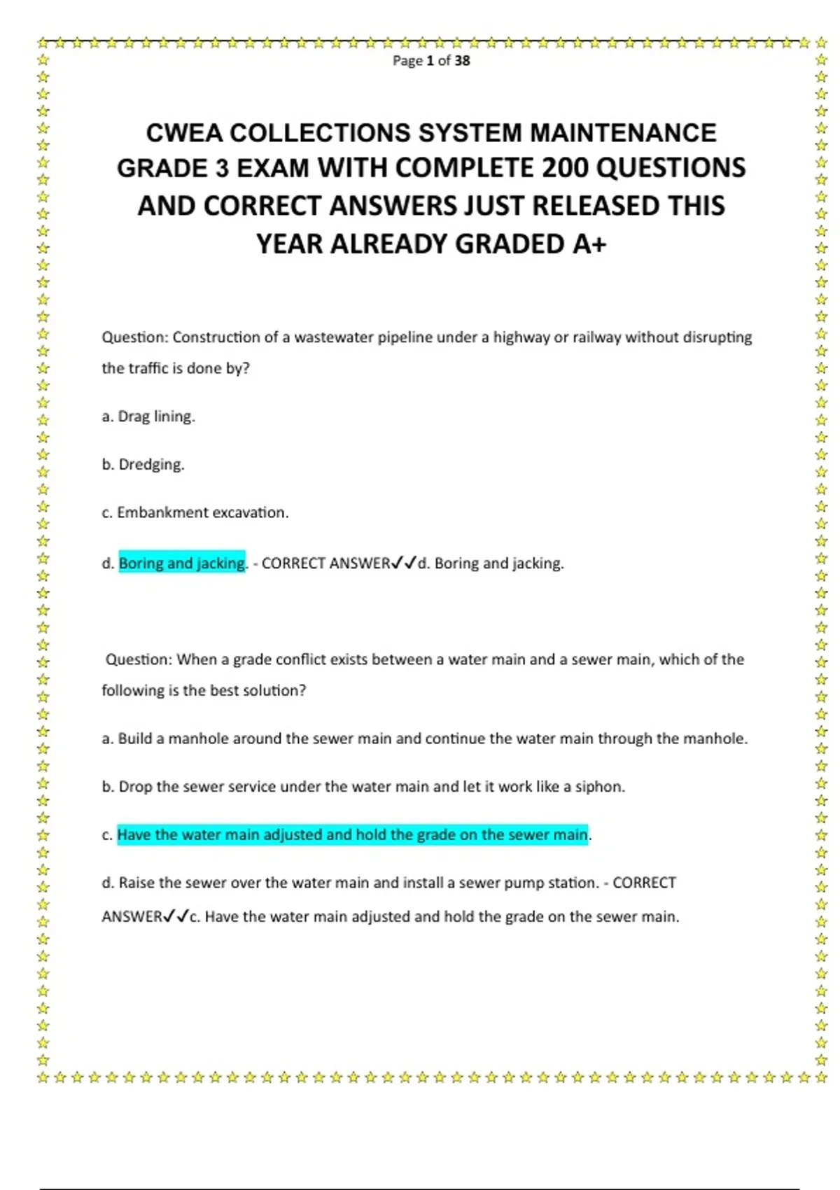d. Boring and jacking. - CORRECT ANSWER✔✔d. Boring and jacking.