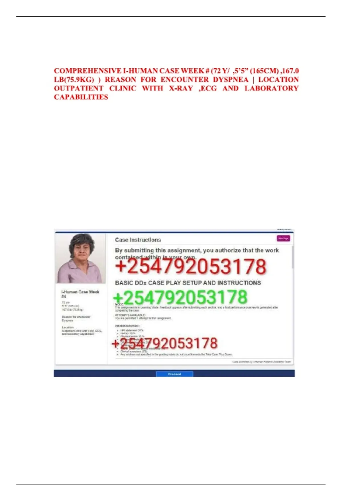 Comprehensive I-Human Case Week # (72-year-old, 5'5 (165 cm), 167.0 lb (75.9 kg)) Reason for Encounter Dyspnea Location Outpatient Clinic with X-ray, ECG, and Laboratory Capabilities.Comprehensive I-Human Case Week # (72-year-old, 5'5 (165 cm), 167.0 lb (75.9 kg)) Reason for Encounter Dyspnea Location Outpatient Clinic with X-ray, ECG, and Laboratory Capabilities.